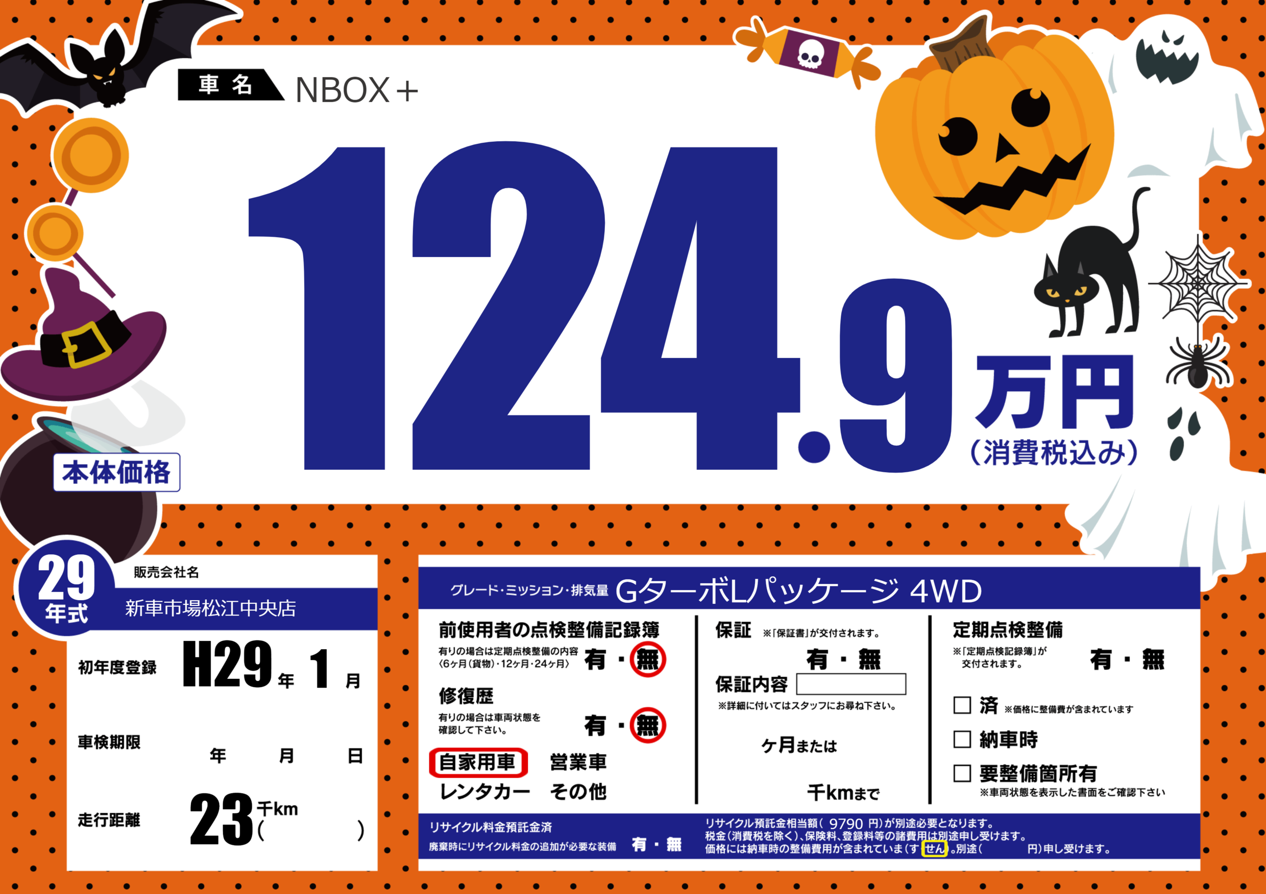 | 車名 | NBOX+ | グレード ミッション 排気量 |
