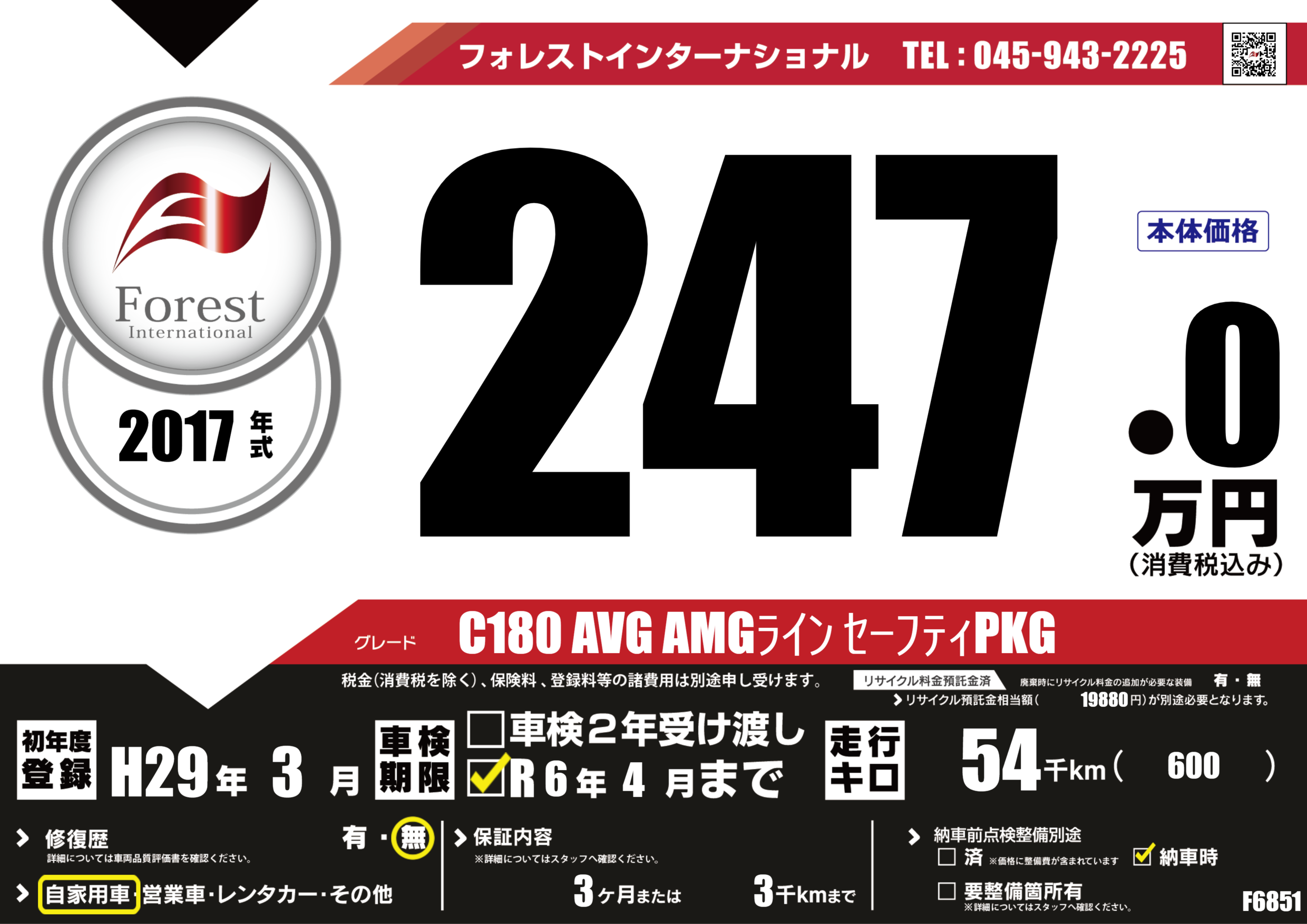 | 走行キロ | 5.4万km | 初年度登録 | H29年3月 |