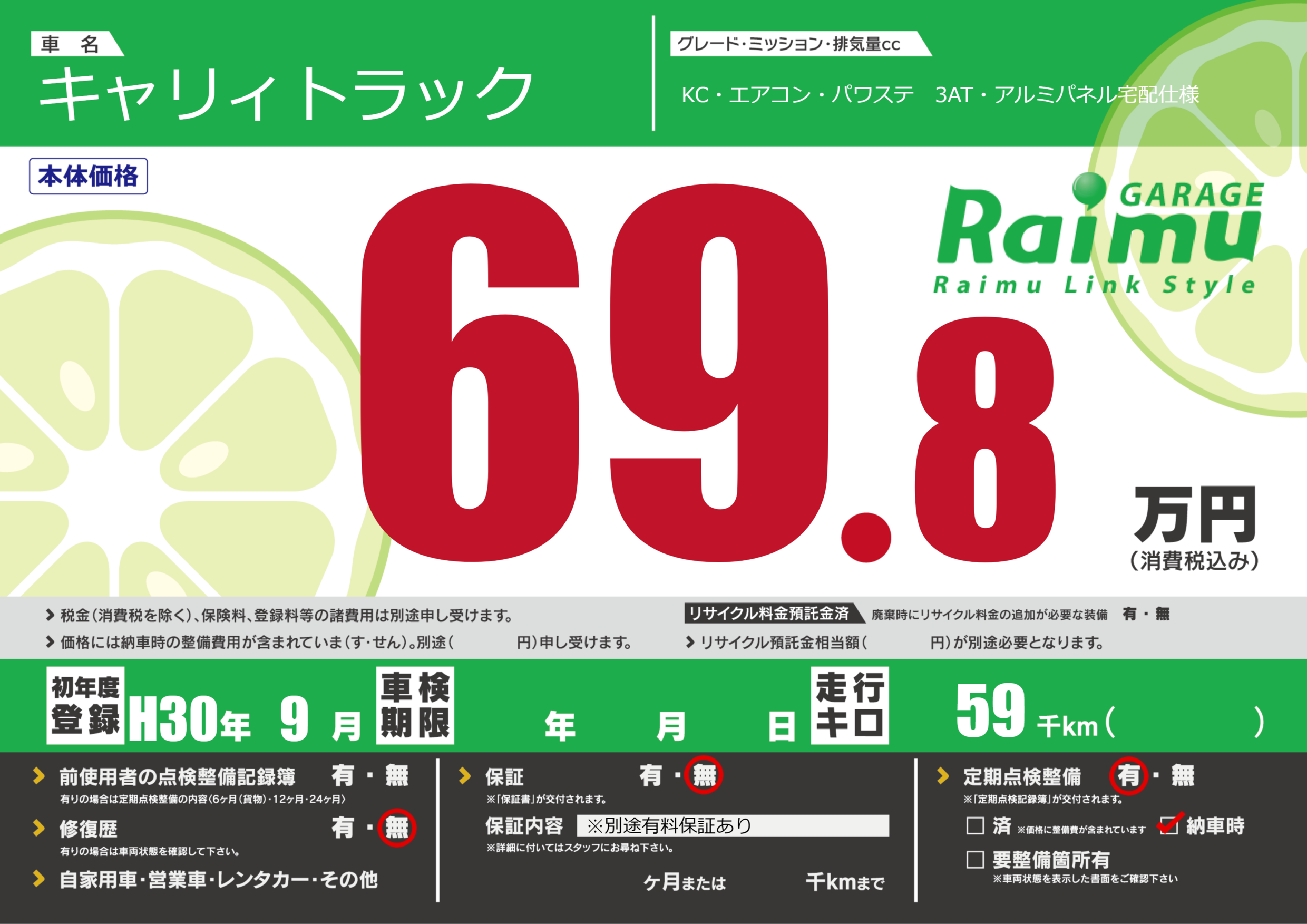 | 車名 | キャリィトラック | グレード ミッション 排気量 |