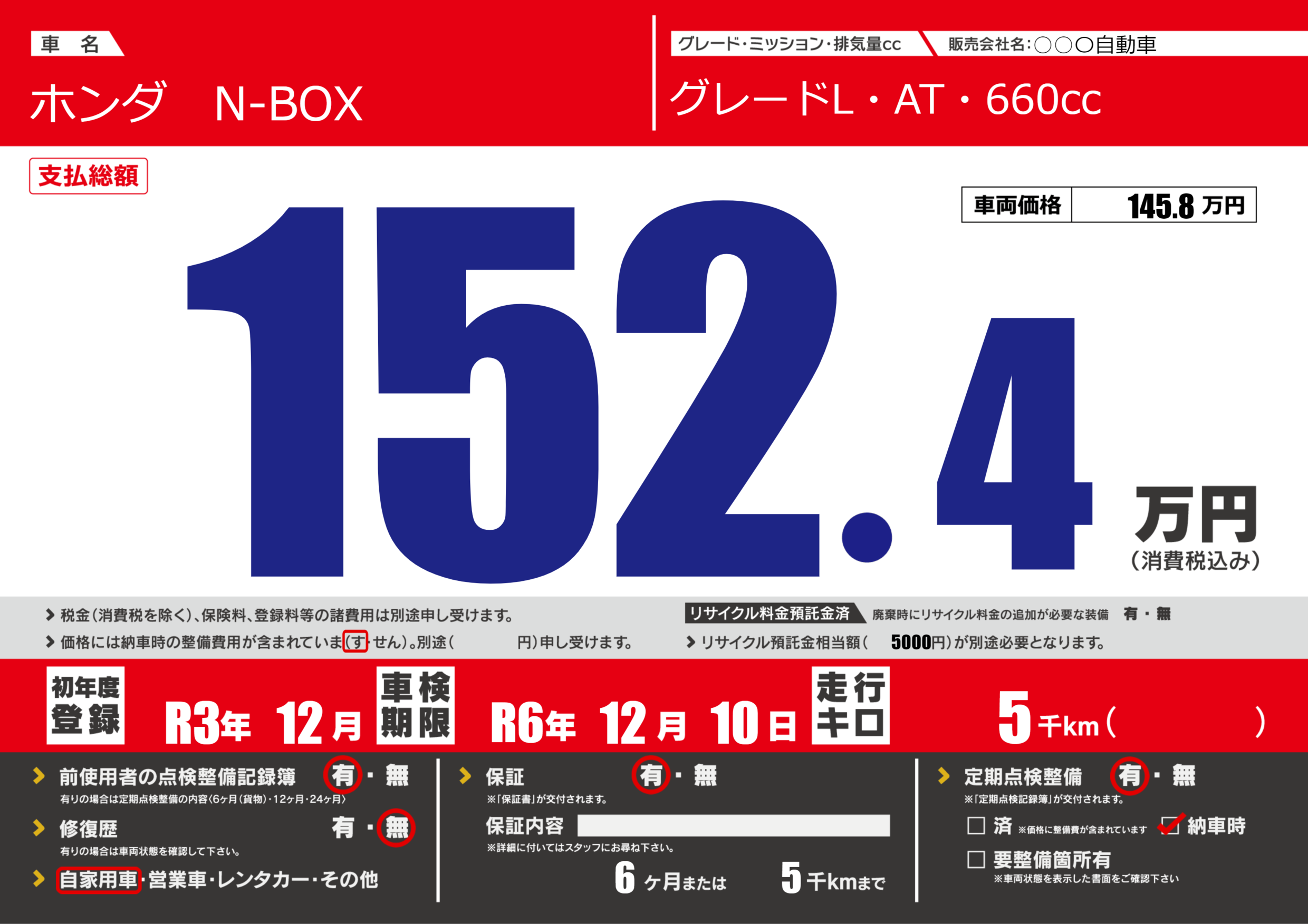 保証付き 保証内容(---) 6ヶ月または(5)千kmまで |