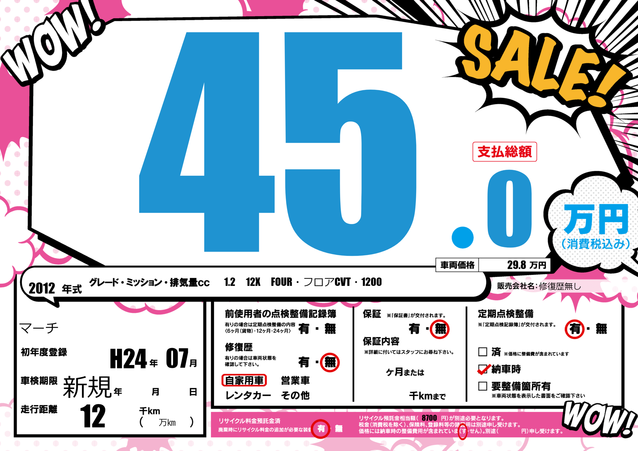 | 車名 | マーチ | グレード ミッション 排気量 |