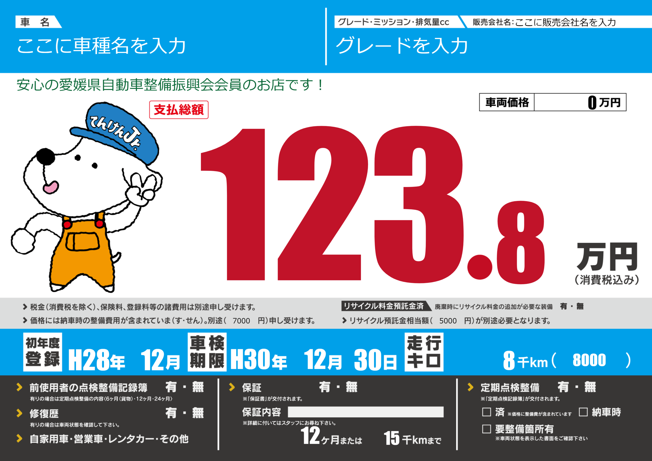 | 車名 | ここに車種名を入力 | グレード ミッション 排気量 |