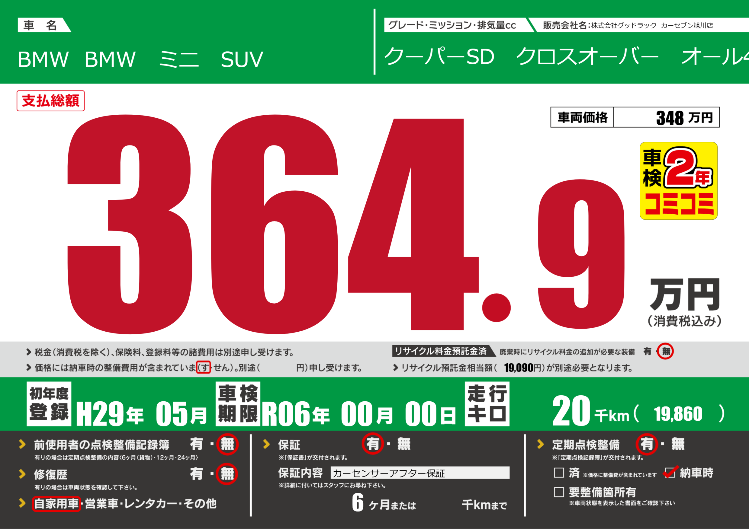 | 車名 | BMW BMW ミニ SUV | グレード ミッション 排気量 |