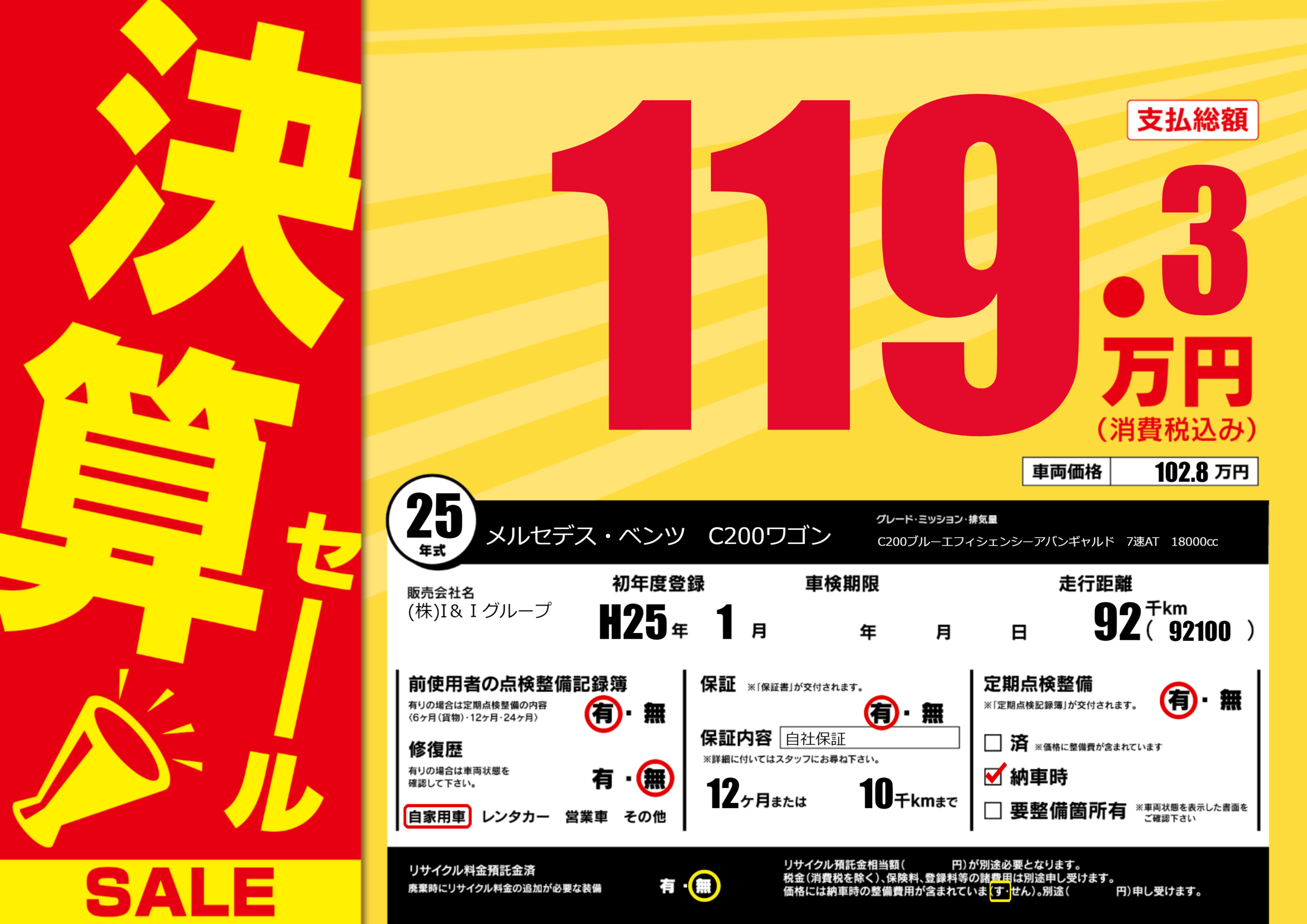 | 定期点検整備 | 定期点検整備あり 納車時あり | ||