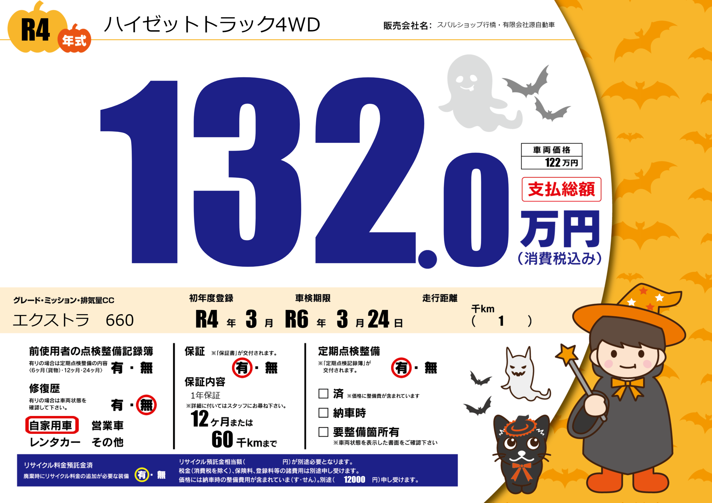 | 車名 | ハイゼットトラック4WD | グレード ミッション 排気量 |