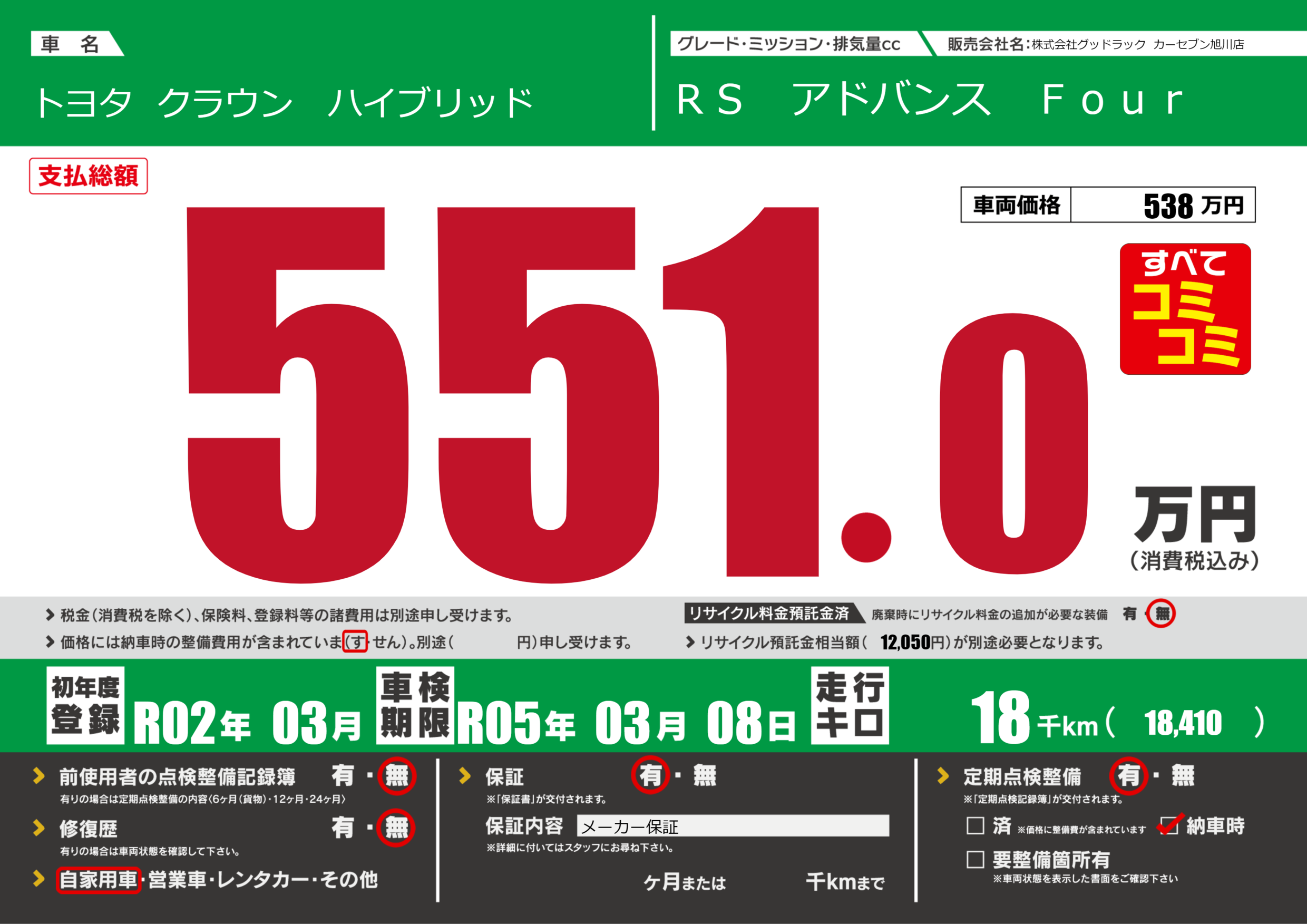 | 車名 | トヨタ クラウン ハイブリッド | グレード ミッション 排気量 |