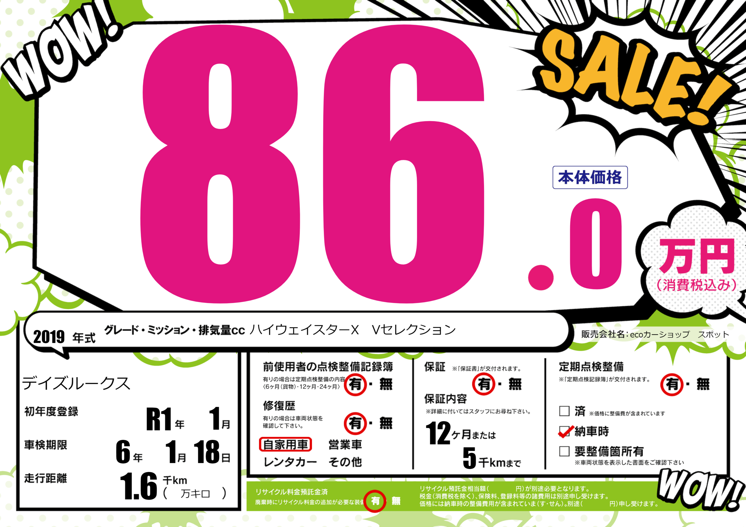 なし | 車検制限 | 6年1月18月 |
