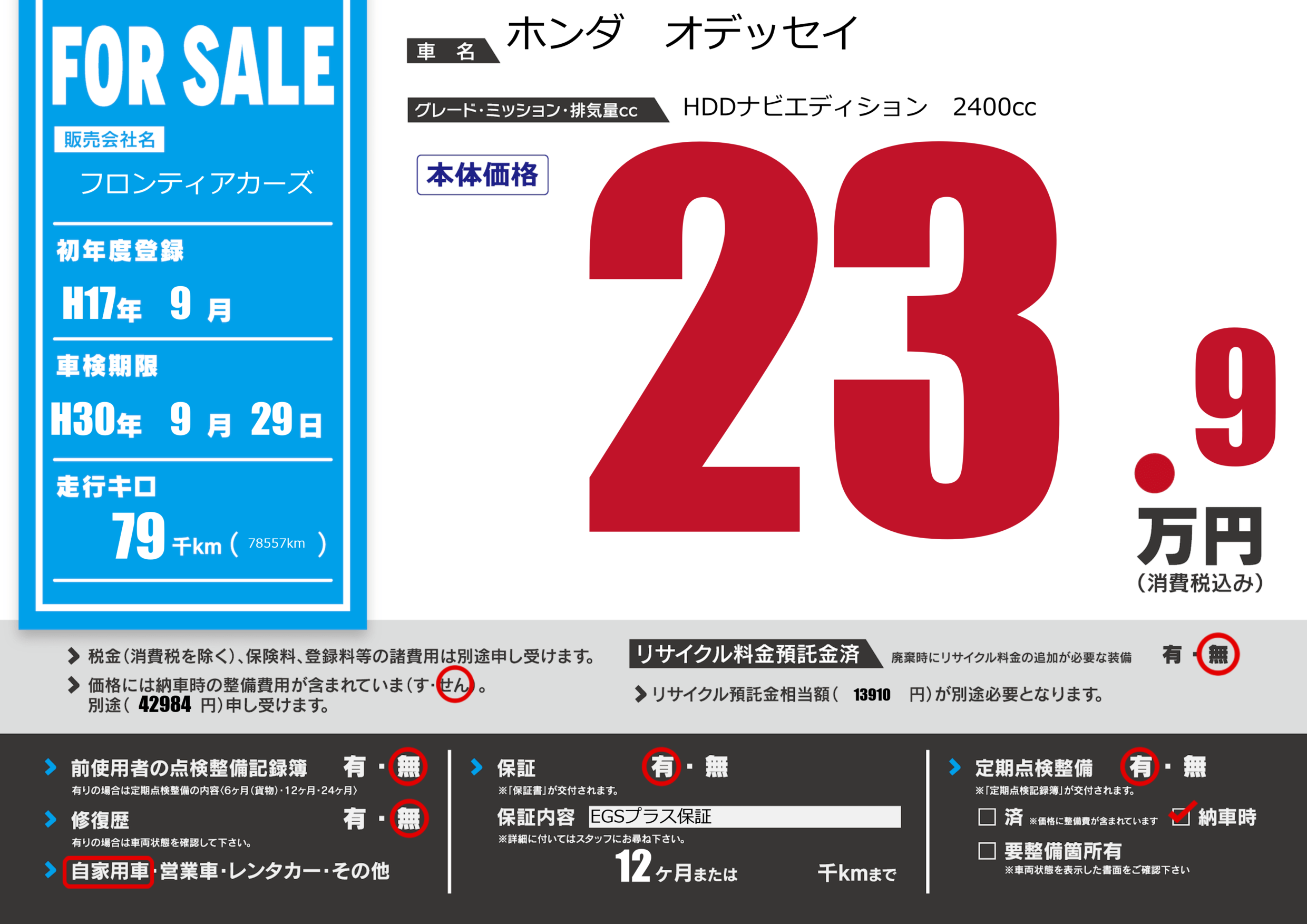 | 走行キロ | 7.9万km | 初年度登録 | H17年9月 |