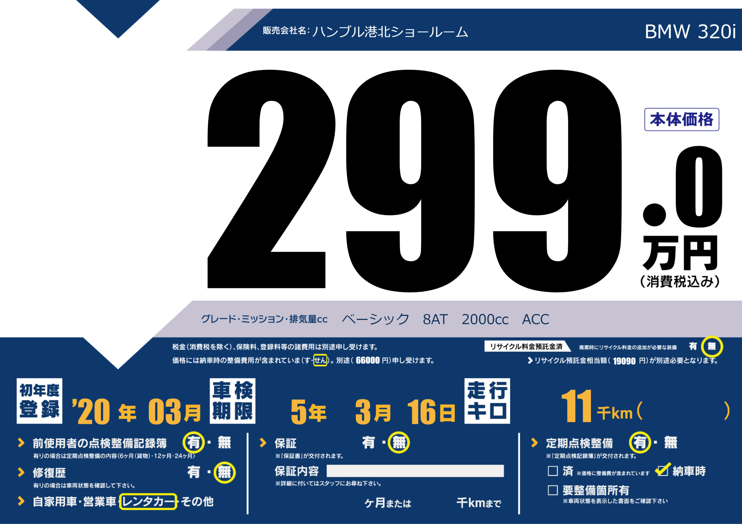 | 定期点検整備 | 定期点検整備あり 納車時あり | ||