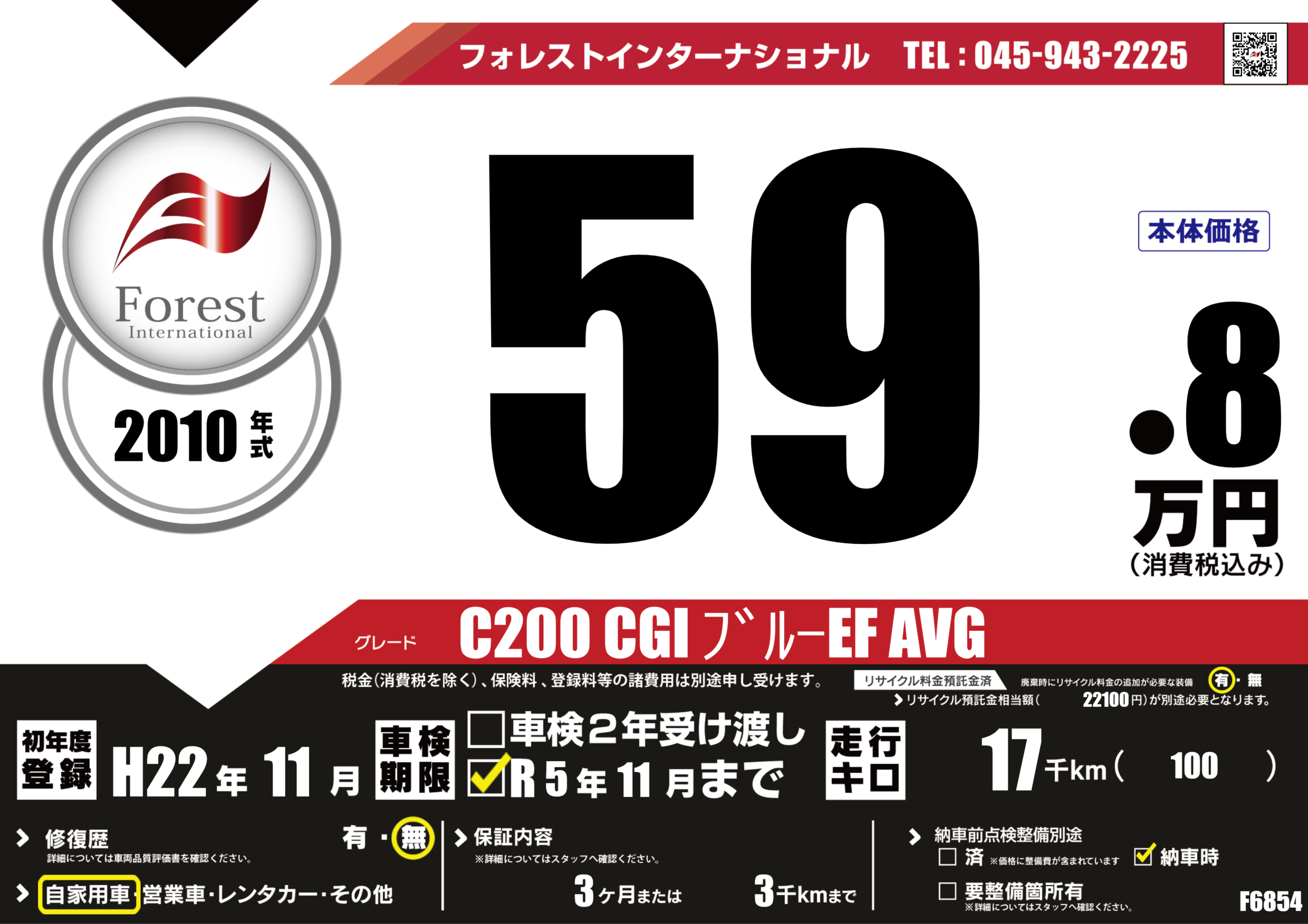 | 走行キロ | 1.7万km | 初年度登録 | H22年11月 |