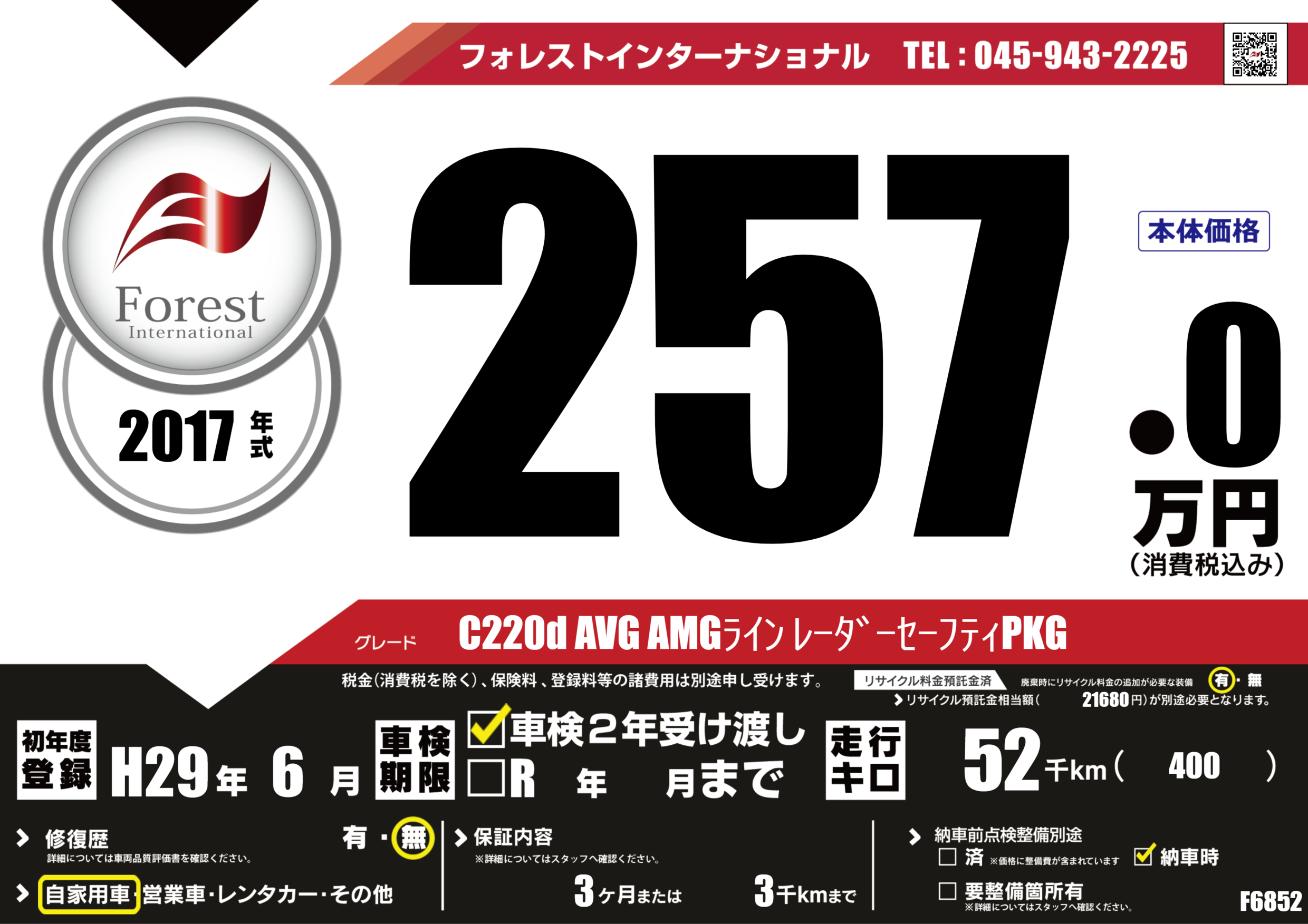 | 走行キロ | 5.2万km | 初年度登録 | H29年6月 |