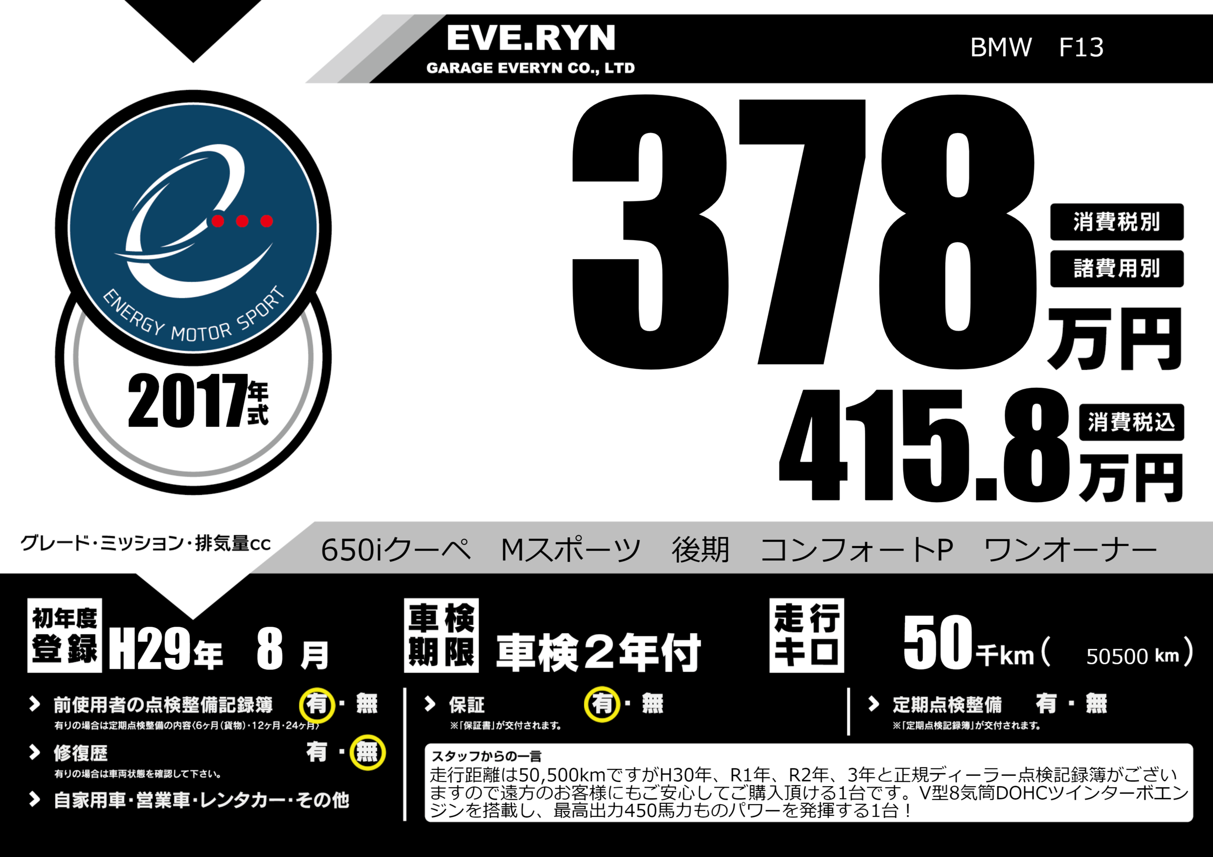 | 車名 | BMW F13 | グレード ミッション 排気量 |