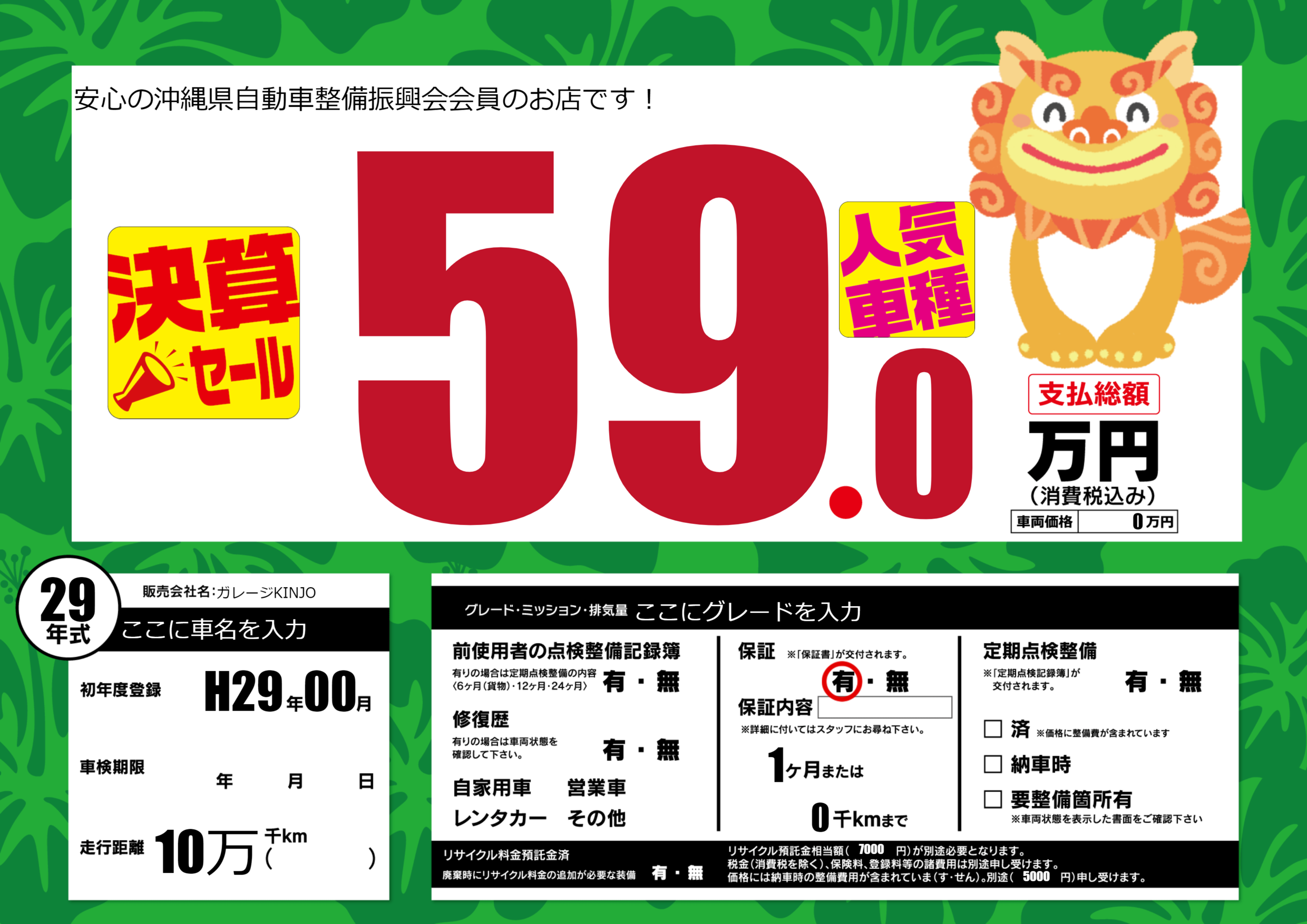 | 車名 | ここに車名を入力 | グレード ミッション 排気量 |