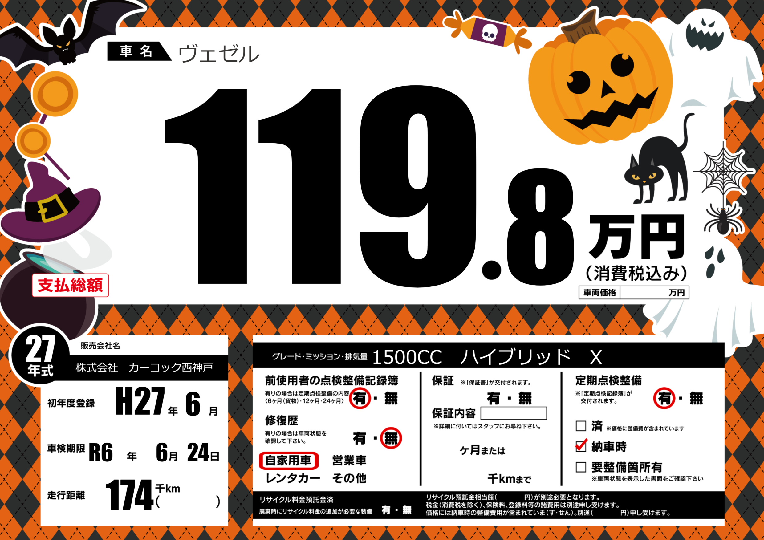 | 走行キロ | 17.4万km | 初年度登録 | H27年6月 |