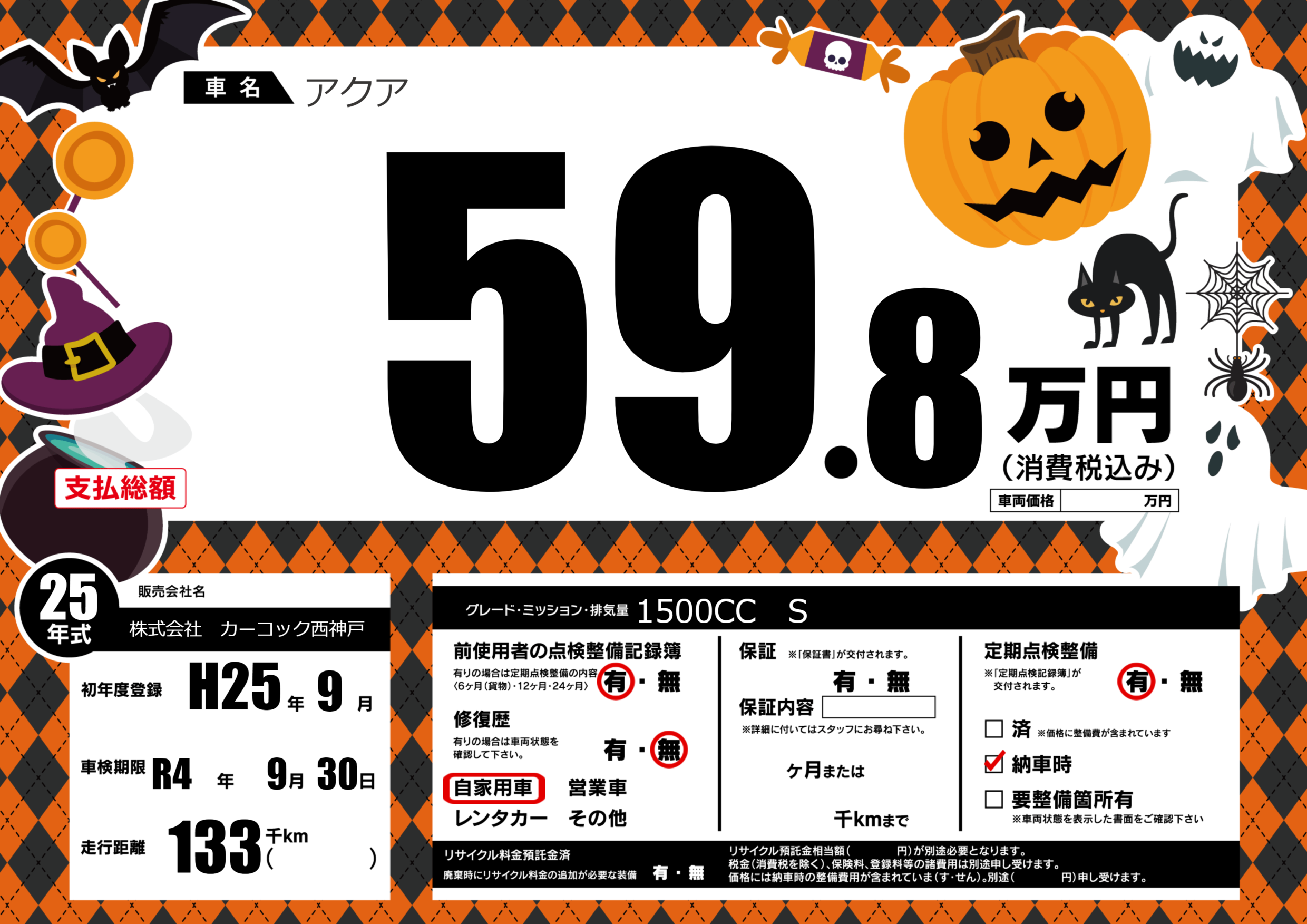 | 定期点検整備 | 定期点検整備あり 納車時あり | ||