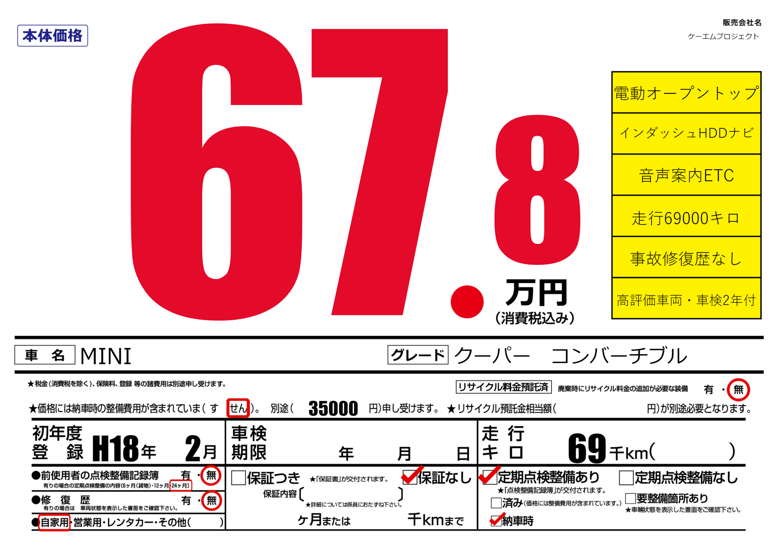 | 定期点検整備 | 定期点検整備あり 納車時あり | ||
