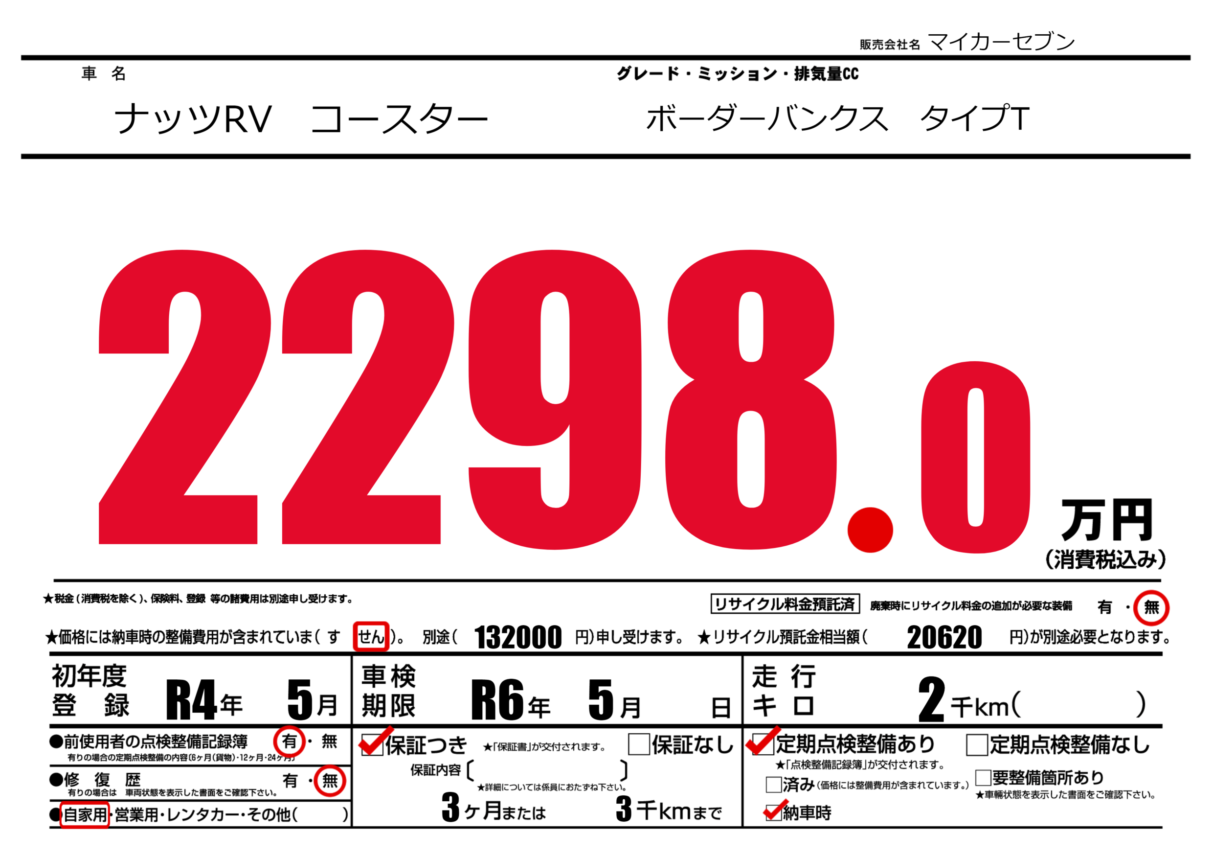 車検制限 | R6年5月---月 |