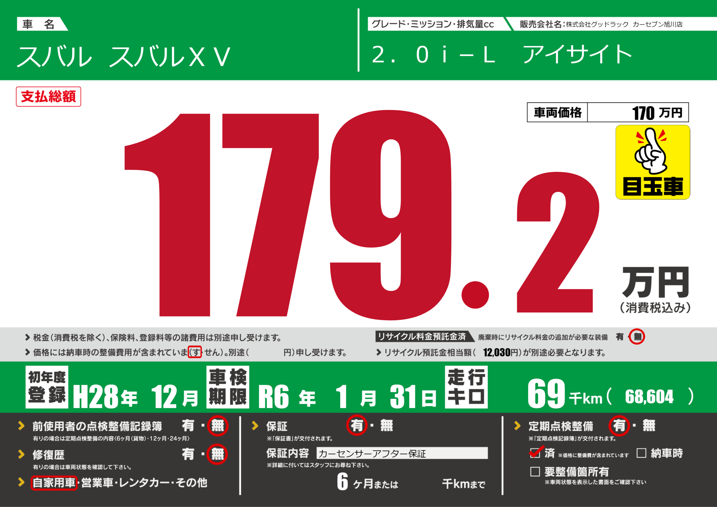 | 定期点検整備 | 定期点検整備あり 定期点検整備済み | ||