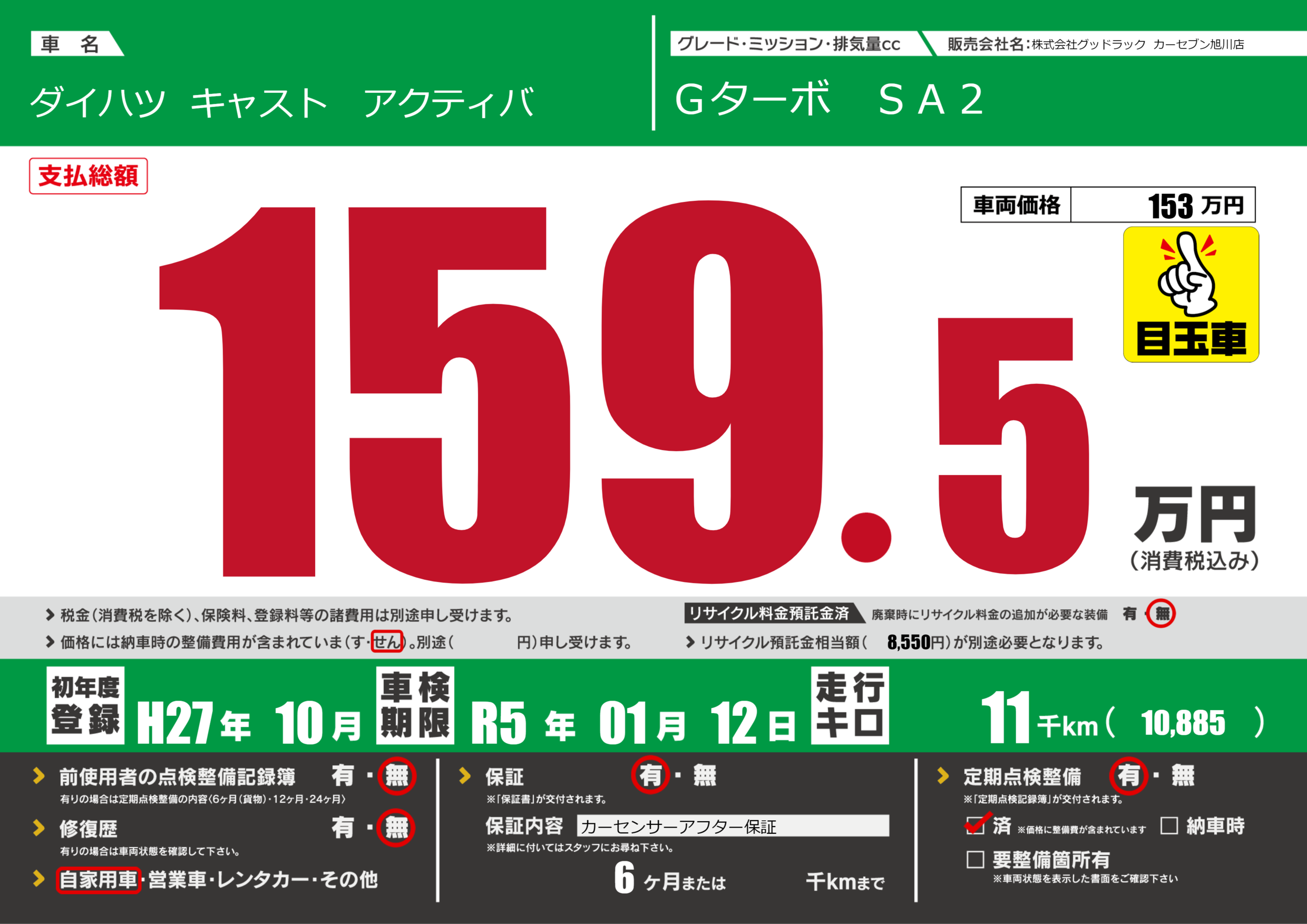 | 定期点検整備 | 定期点検整備あり 定期点検整備済み | ||