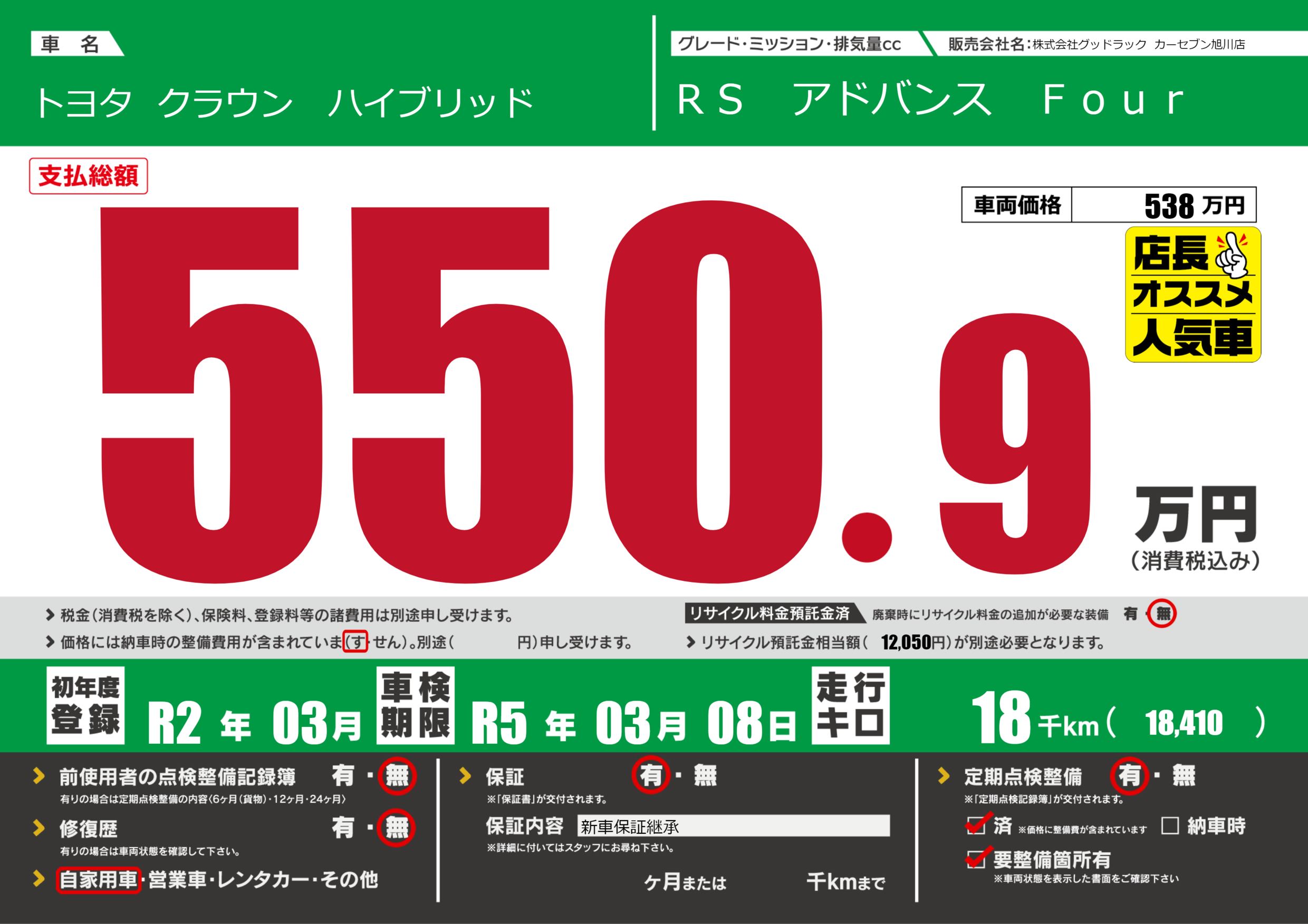 | 車検制限 | R5年 03月 08日 | ||