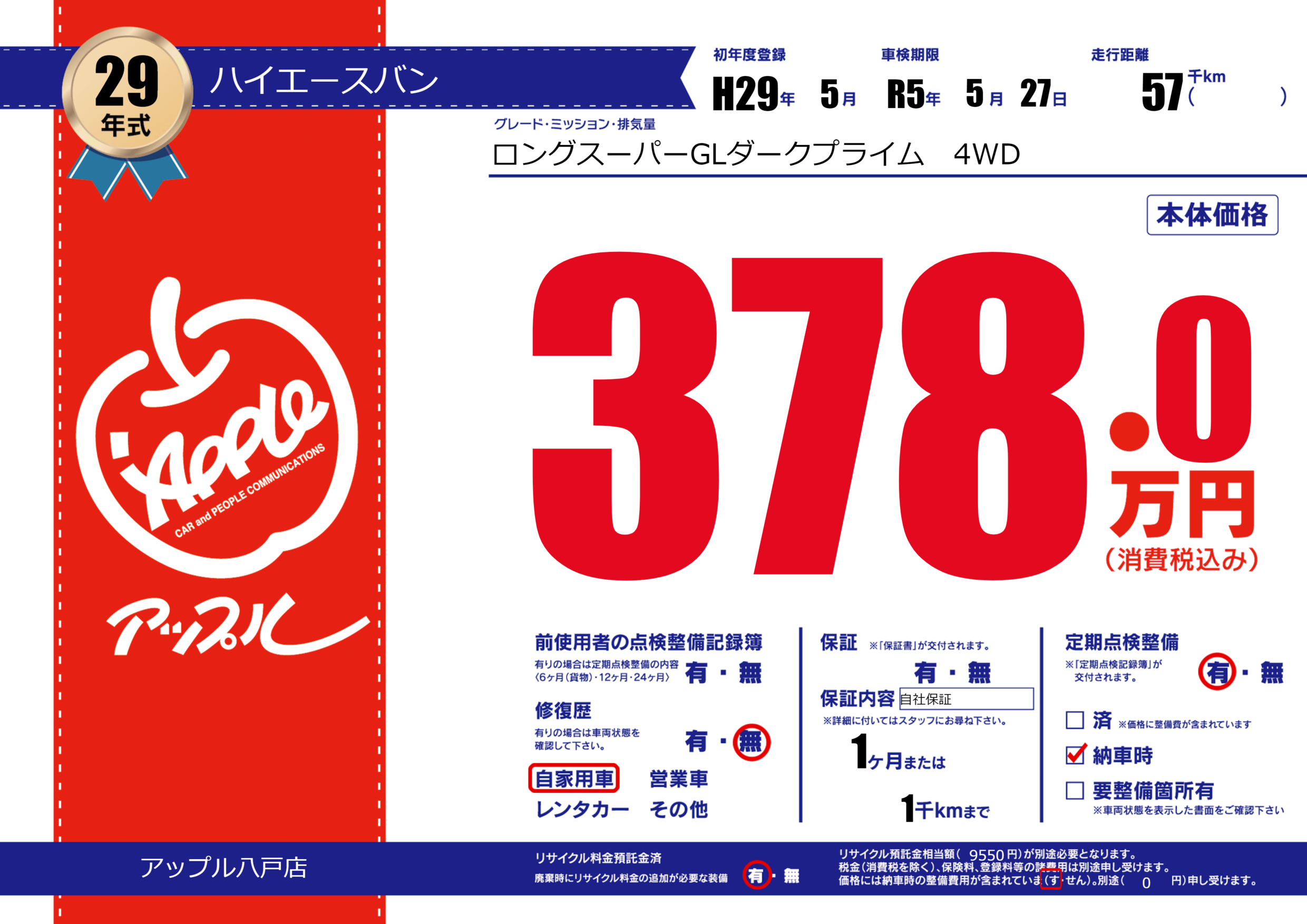| 車名 | ハイエースバン | グレード ミッション 排気量 |