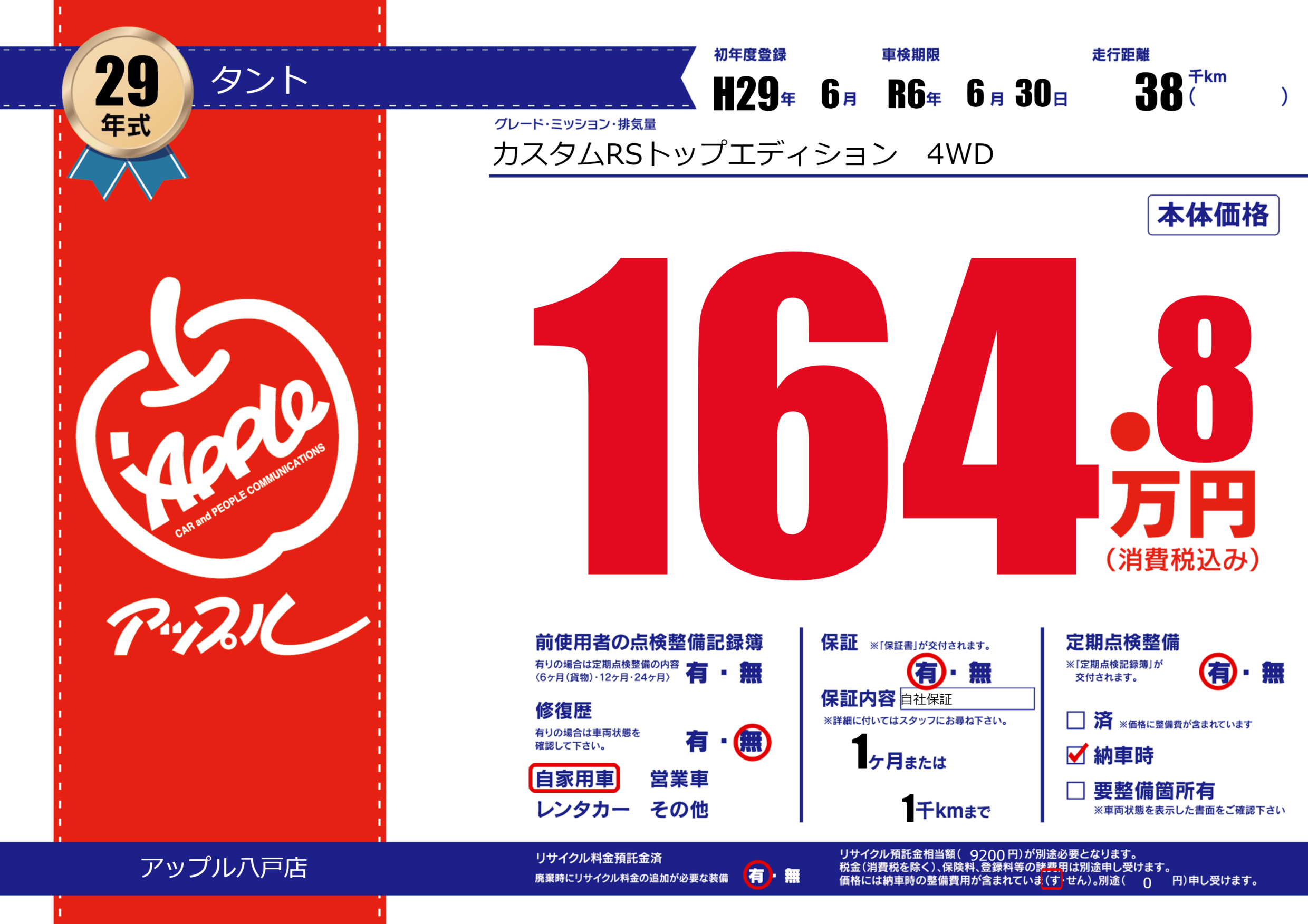 | 車検制限 | R6年 6月 30日 | ||