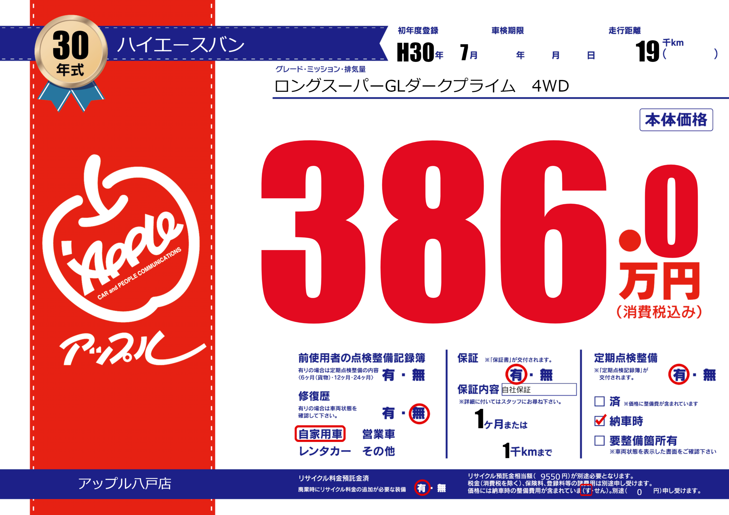 保証付き 保証内容(自社保証) 1ヶ月または(1)千kmまで |