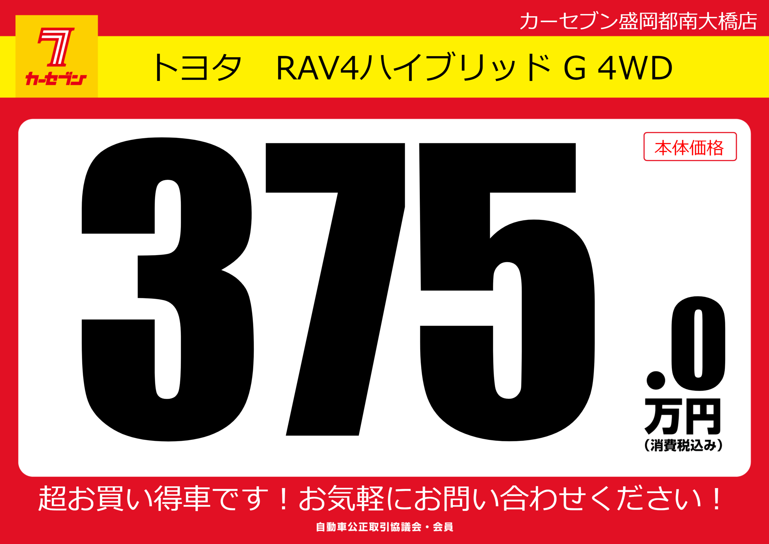 | 車名 | トヨタ RAV4ハイブリッド G 4WD | グレード ミッション 排気量 |