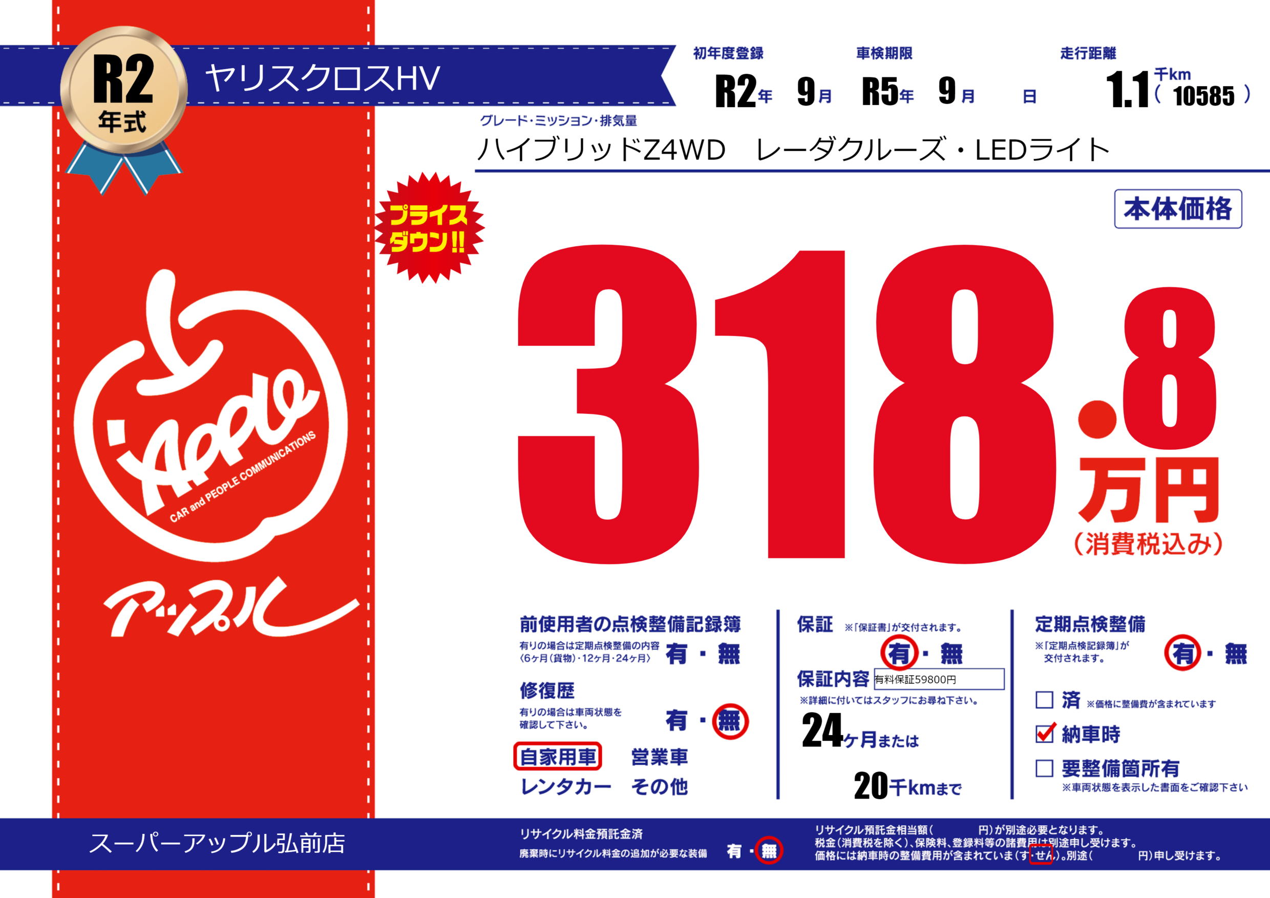 | 走行キロ | 0.1万km | 初年度登録 | R2年9月 |