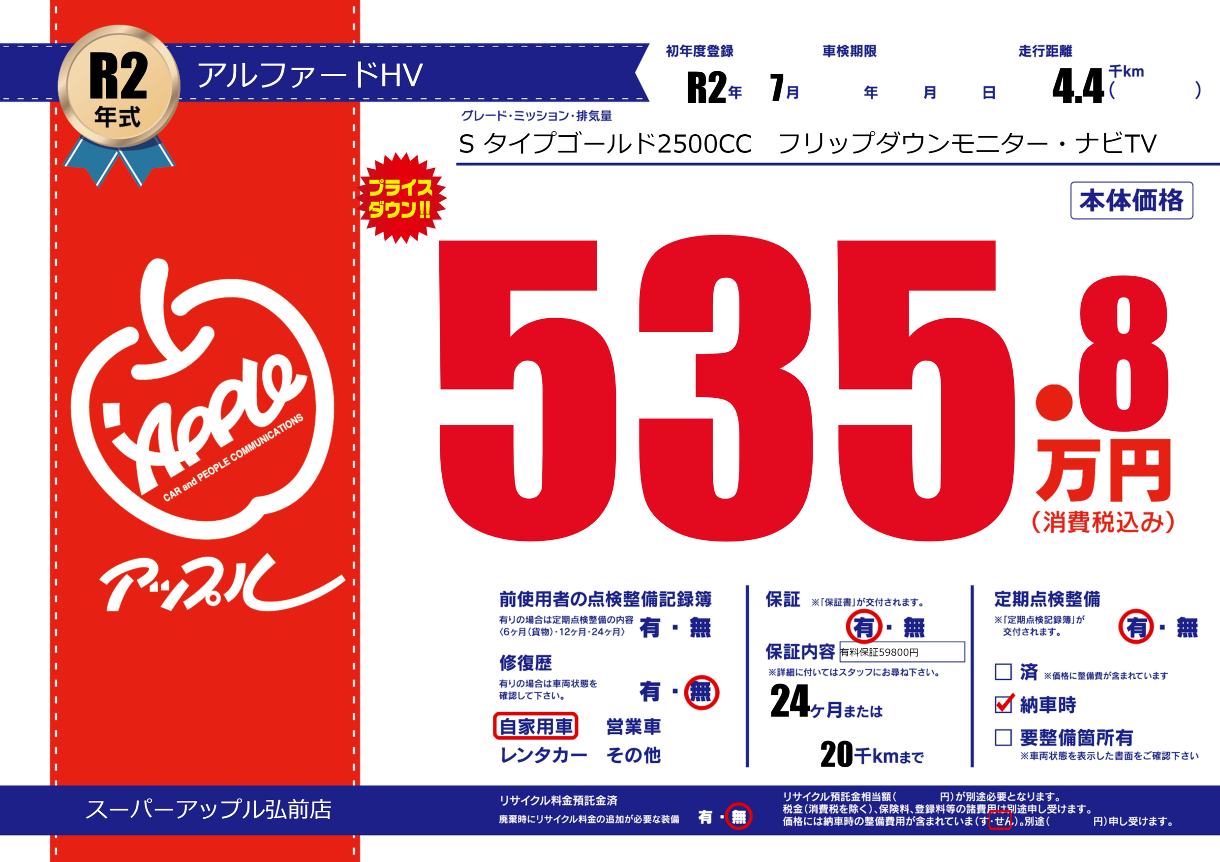 | 車名 | アルファードHV | グレード ミッション 排気量 |