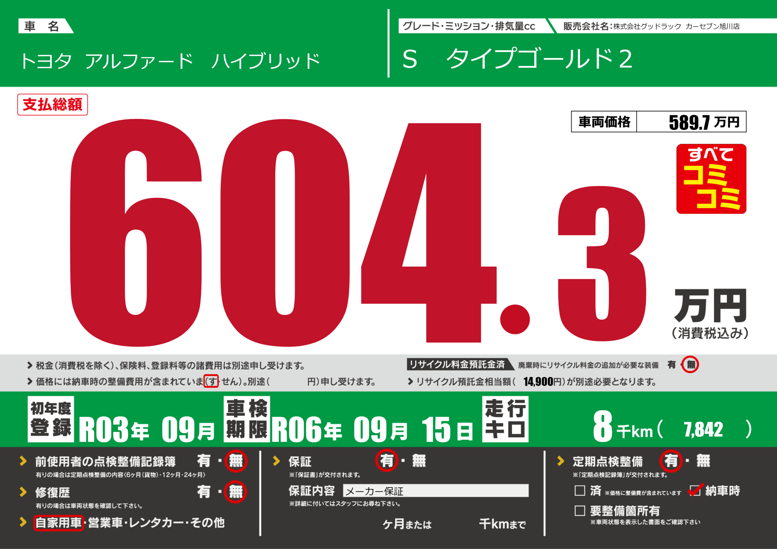 あり | 車検制限 | R06年09月15月 |