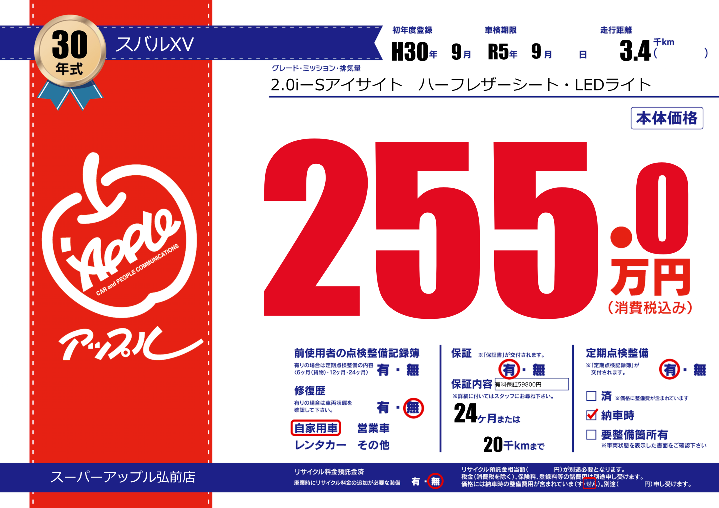 | 走行キロ | 0.3万km | 初年度登録 | H30年9月 |