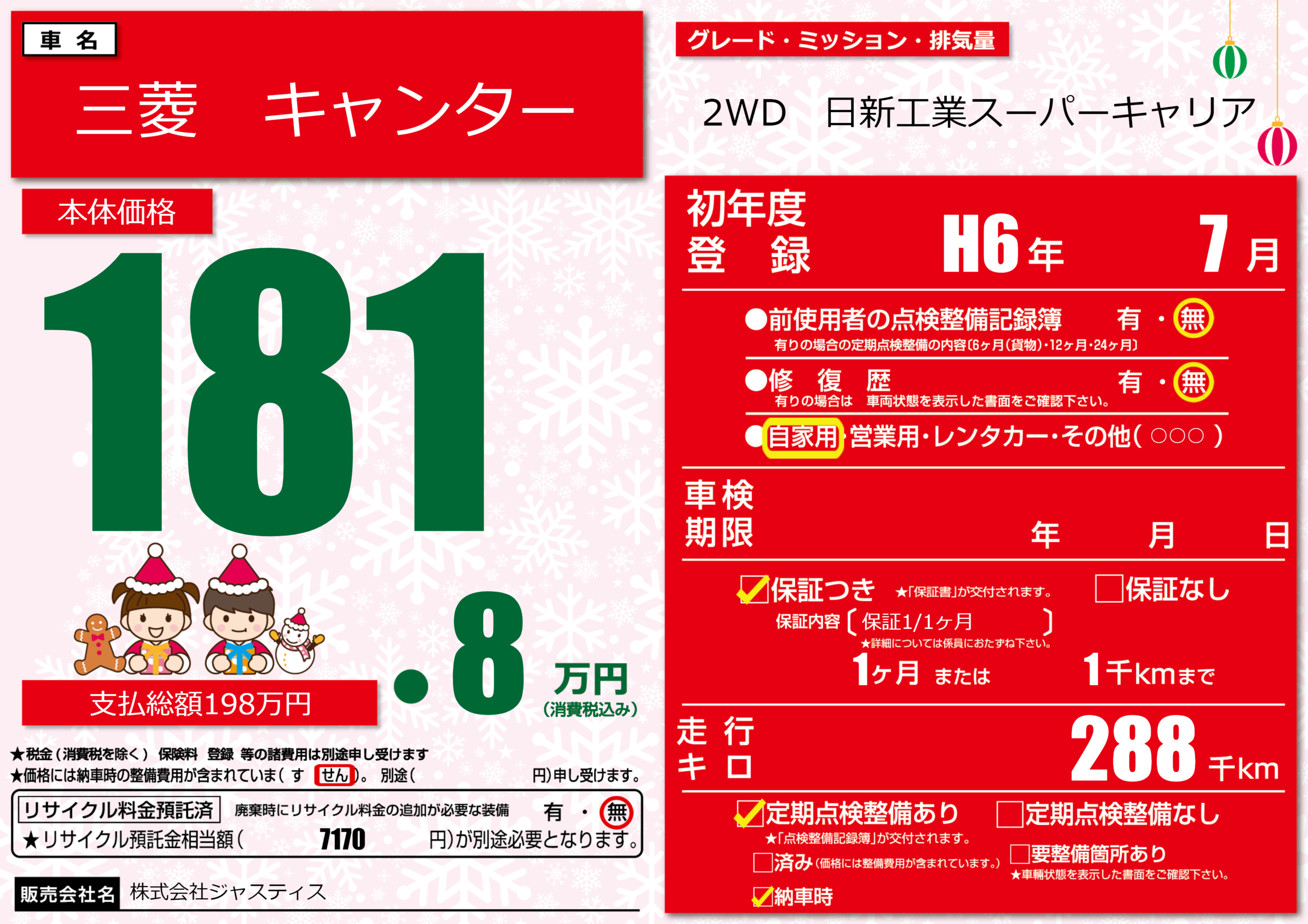 | 定期点検整備 | 定期点検整備あり 納車時あり | ||