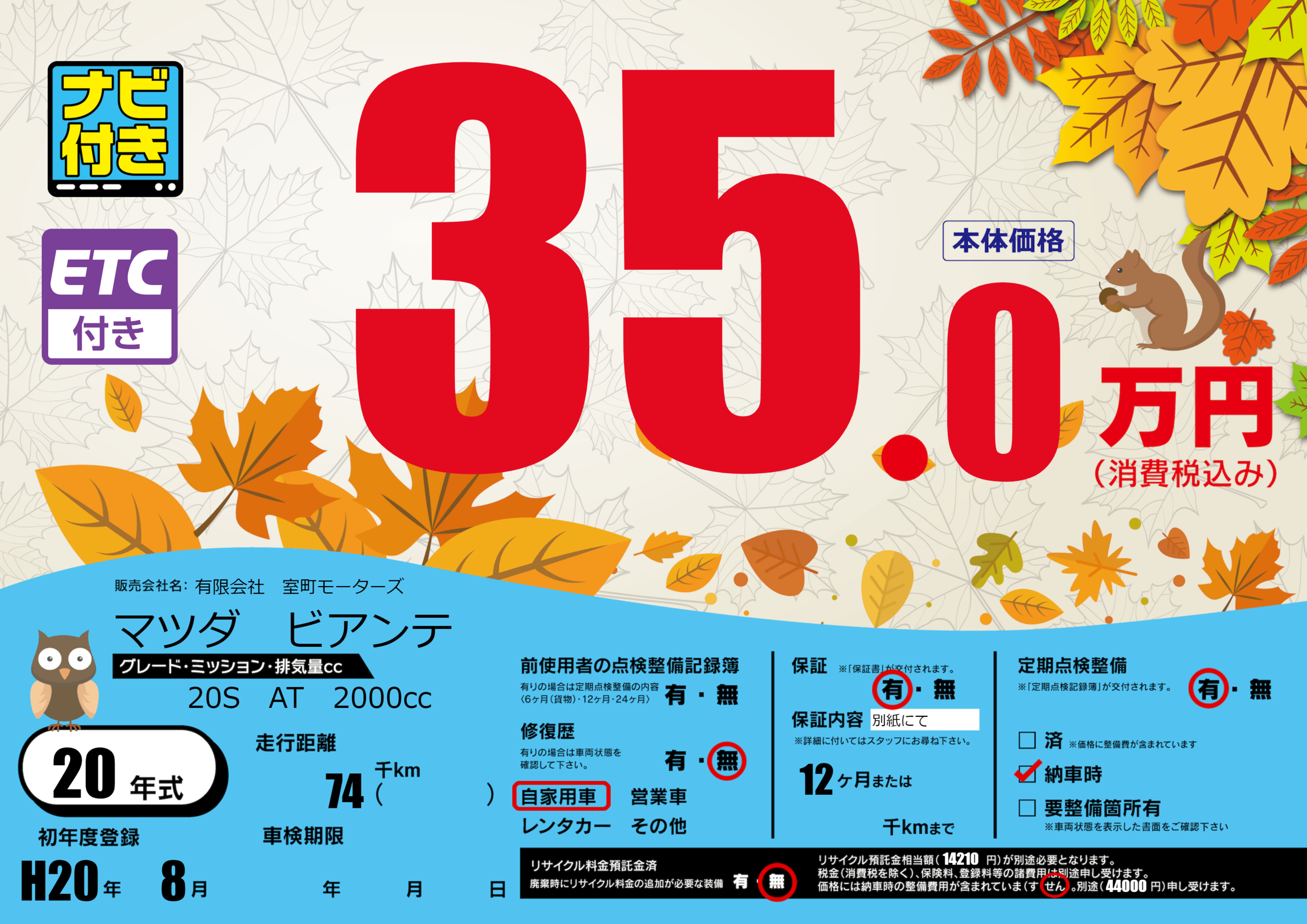 | 車名 | マツダ ビアンテ | グレード ミッション 排気量 |