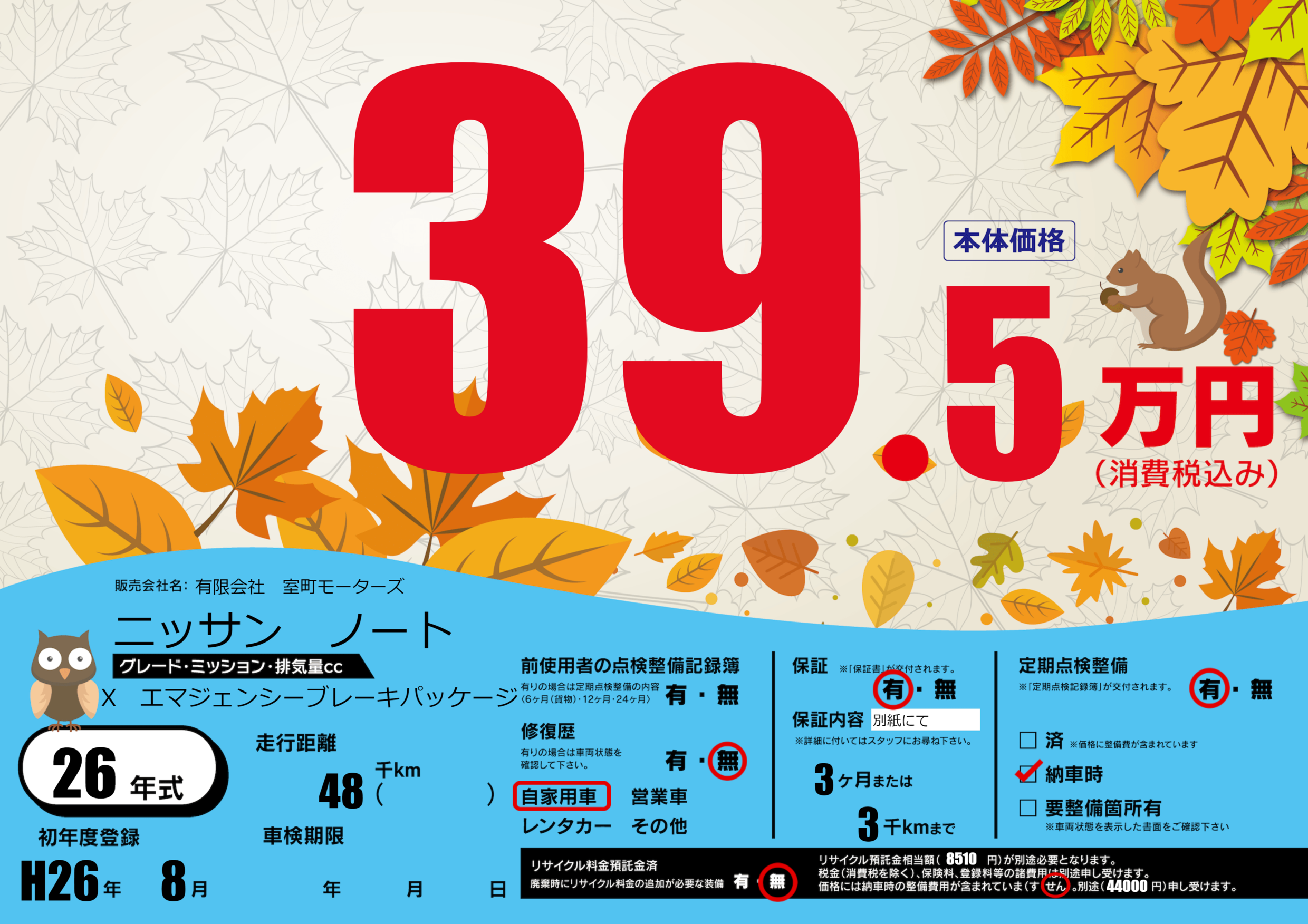 | 走行キロ | 4.8万km | 初年度登録 | H26年8月 |