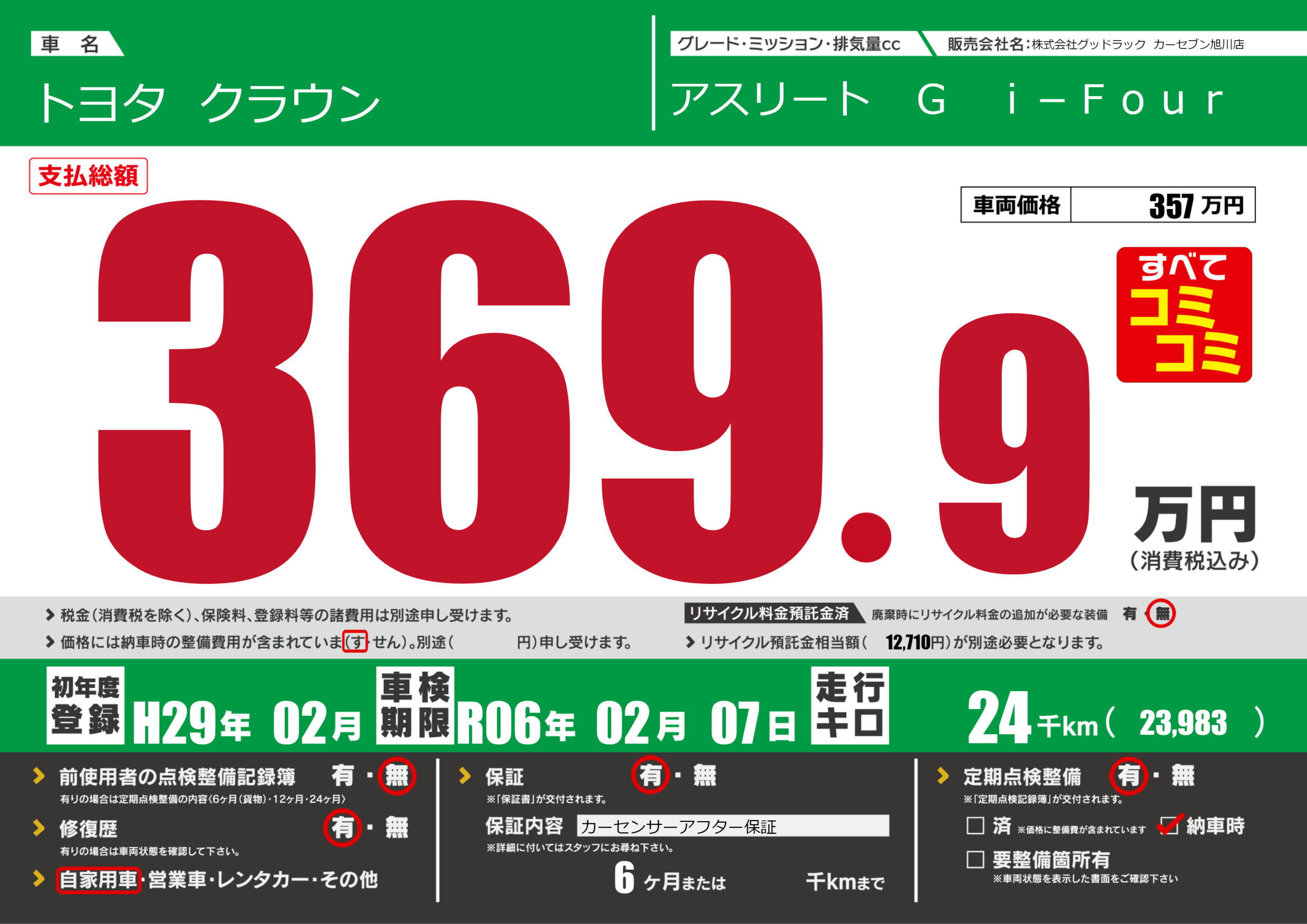 あり | 車検制限 | R06年02月07月 |