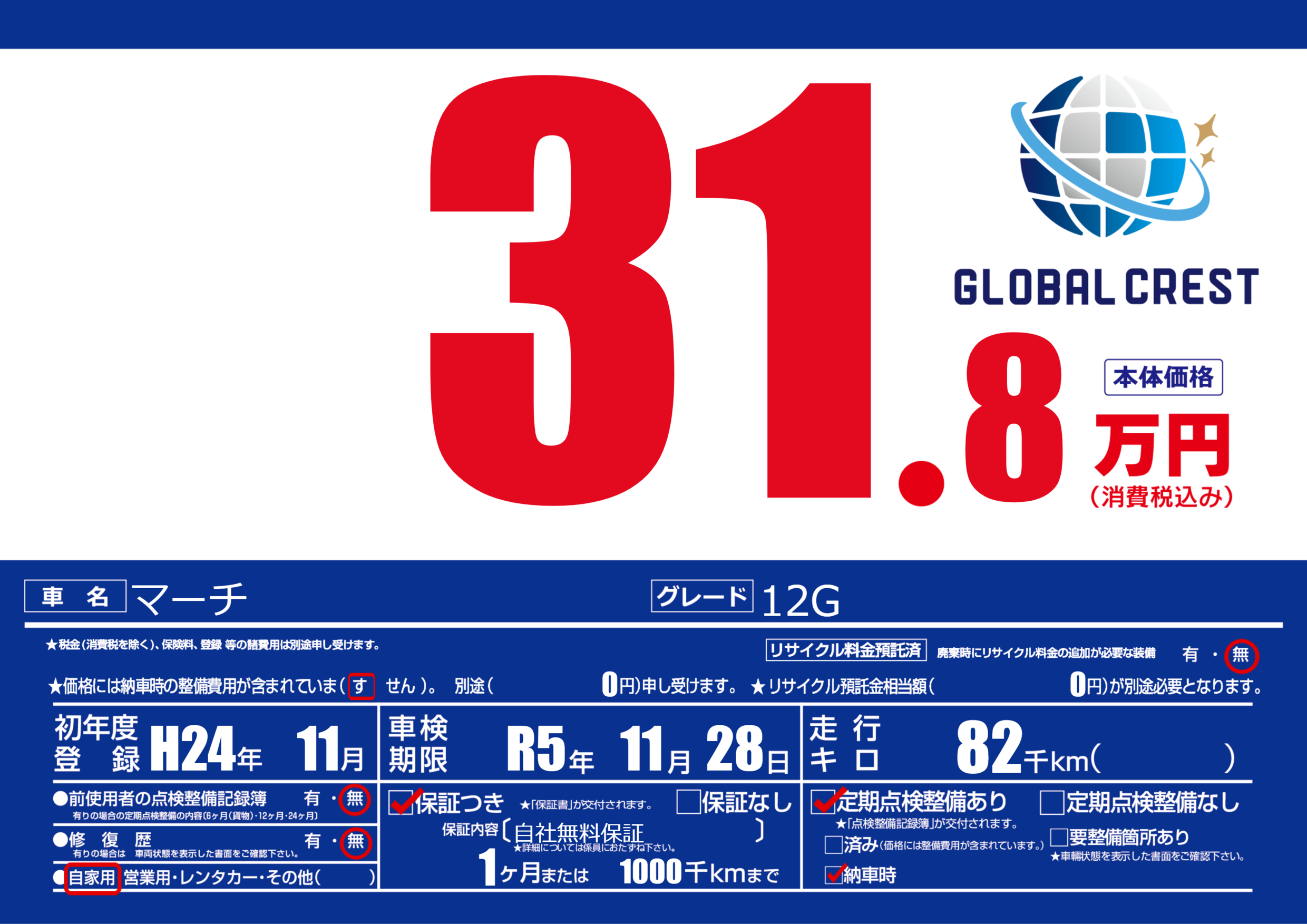 | 車名 | マーチ | グレード ミッション 排気量 |