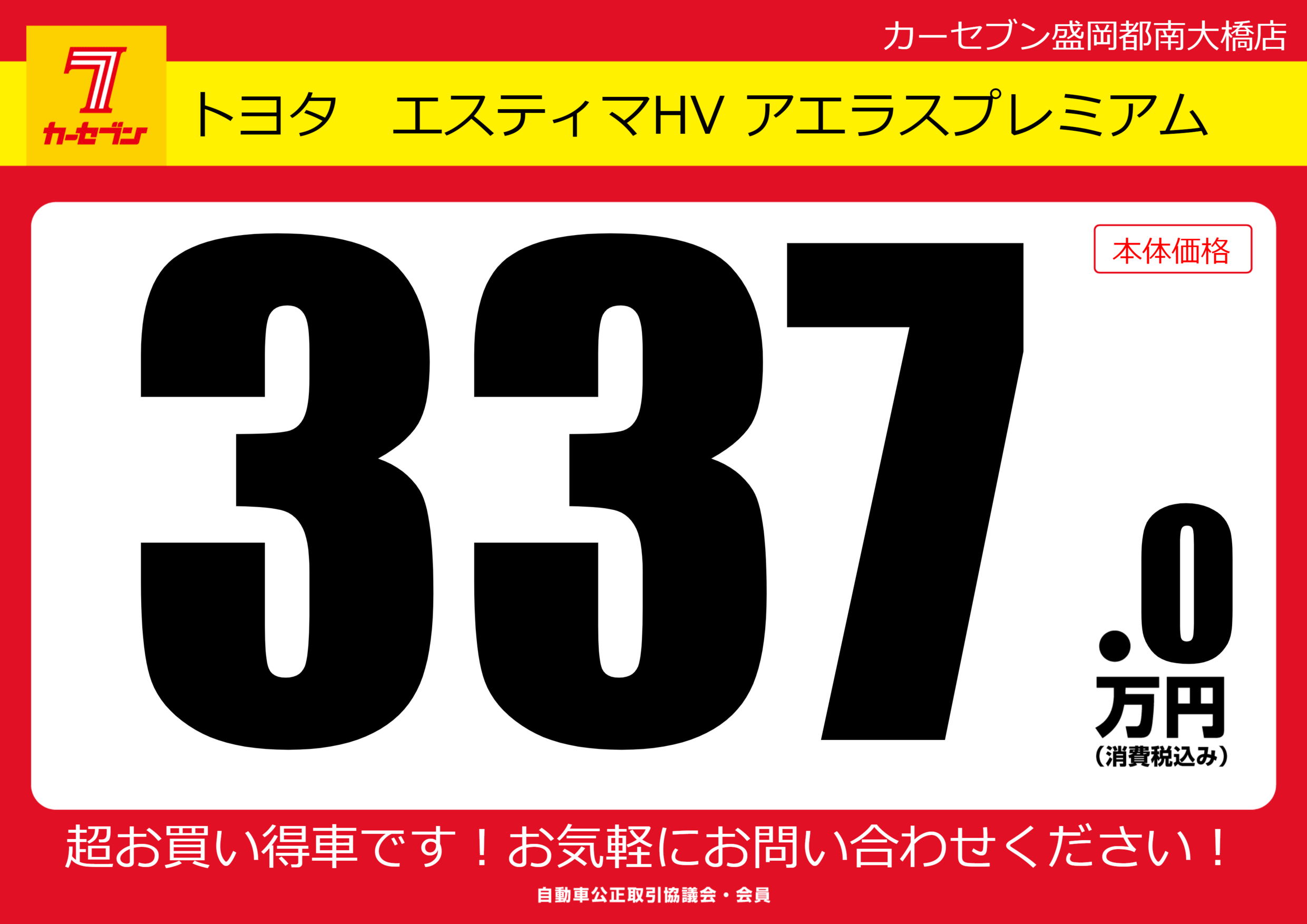 | 車名 | トヨタ エスティマHV アエラスプレミアム | グレード ミッション 排気量 |