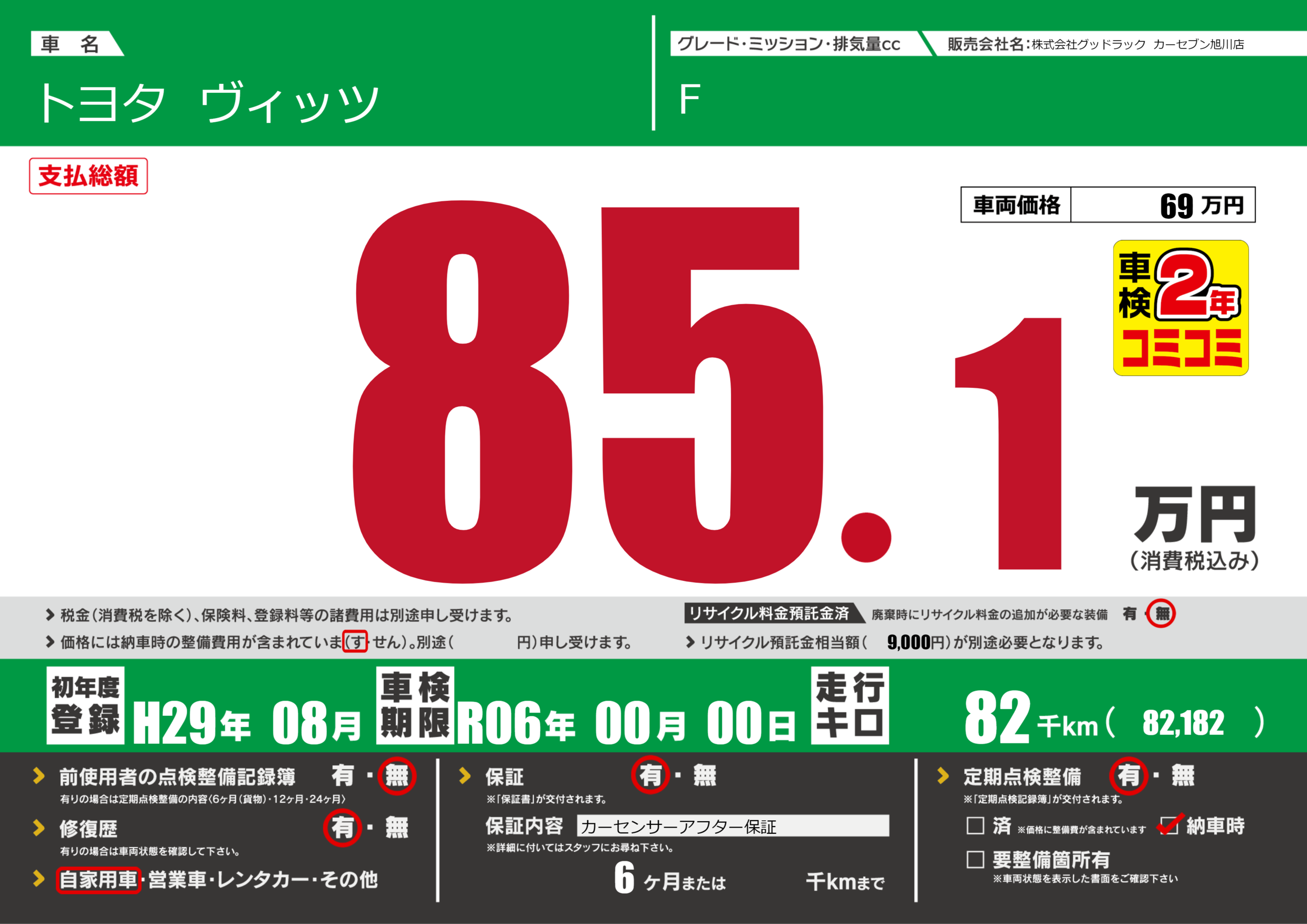 | 定期点検整備 | 定期点検整備あり 納車時あり | ||
