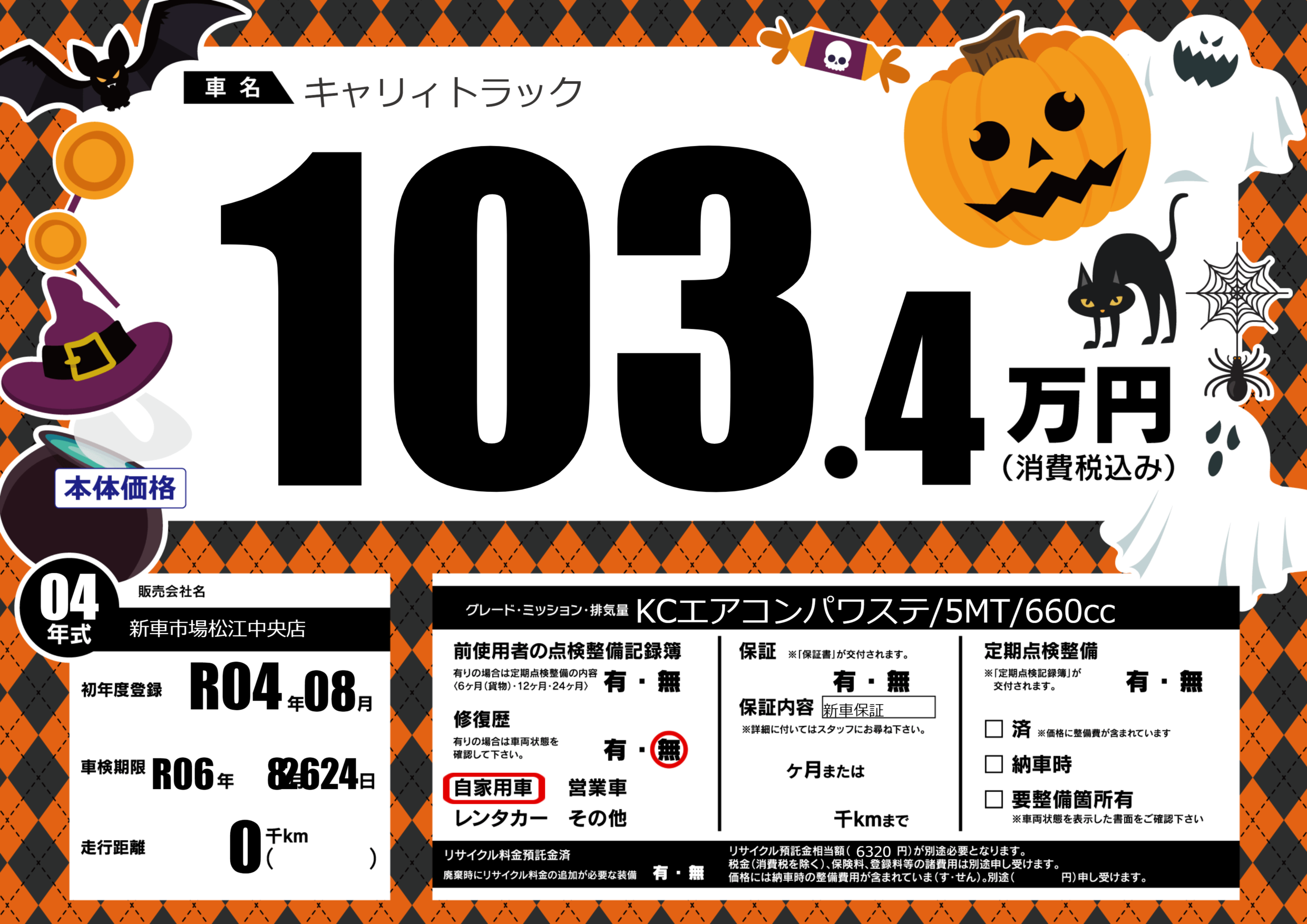 | 走行キロ | - | 初年度登録 | R04年08月 |