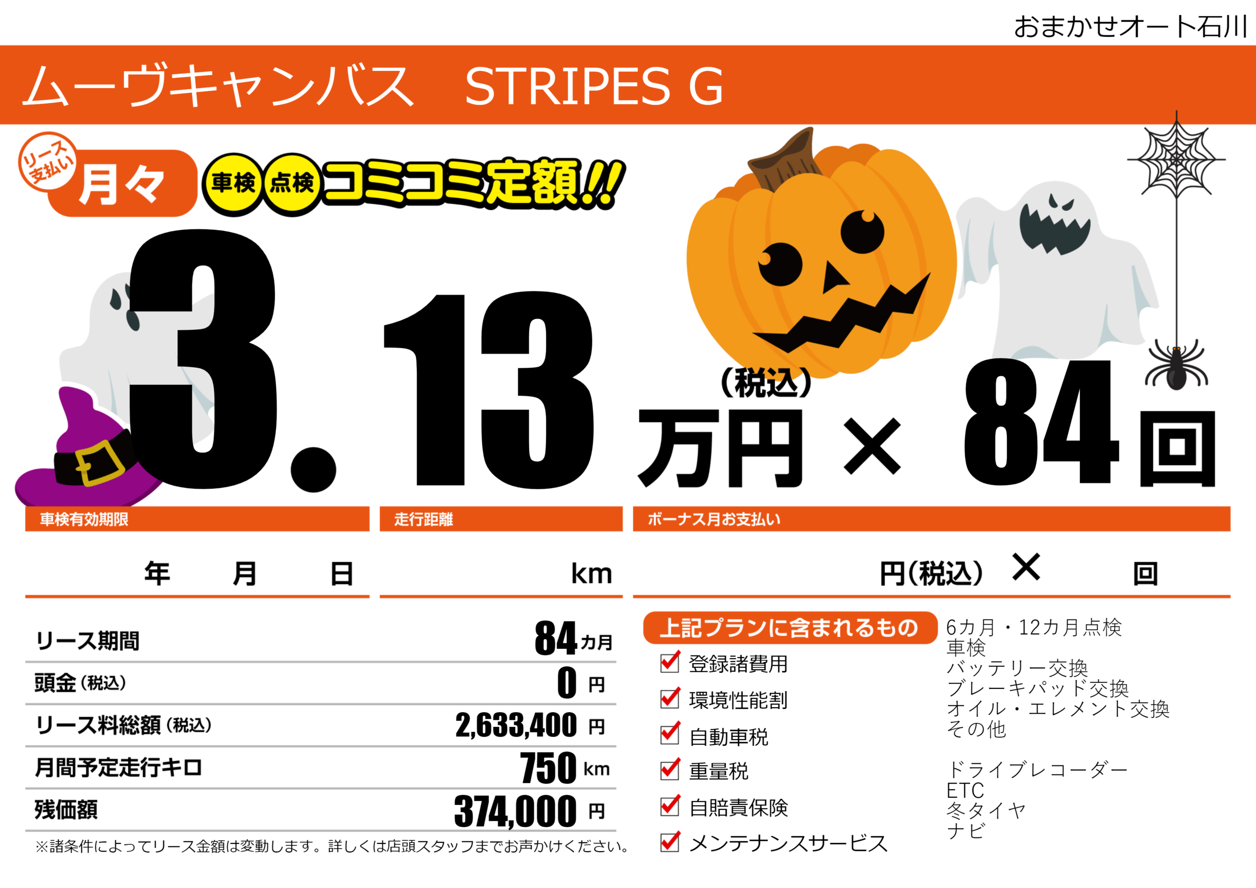 | 車名 | ムーヴキャンバス STRIPES G | グレード ミッション 排気量 |