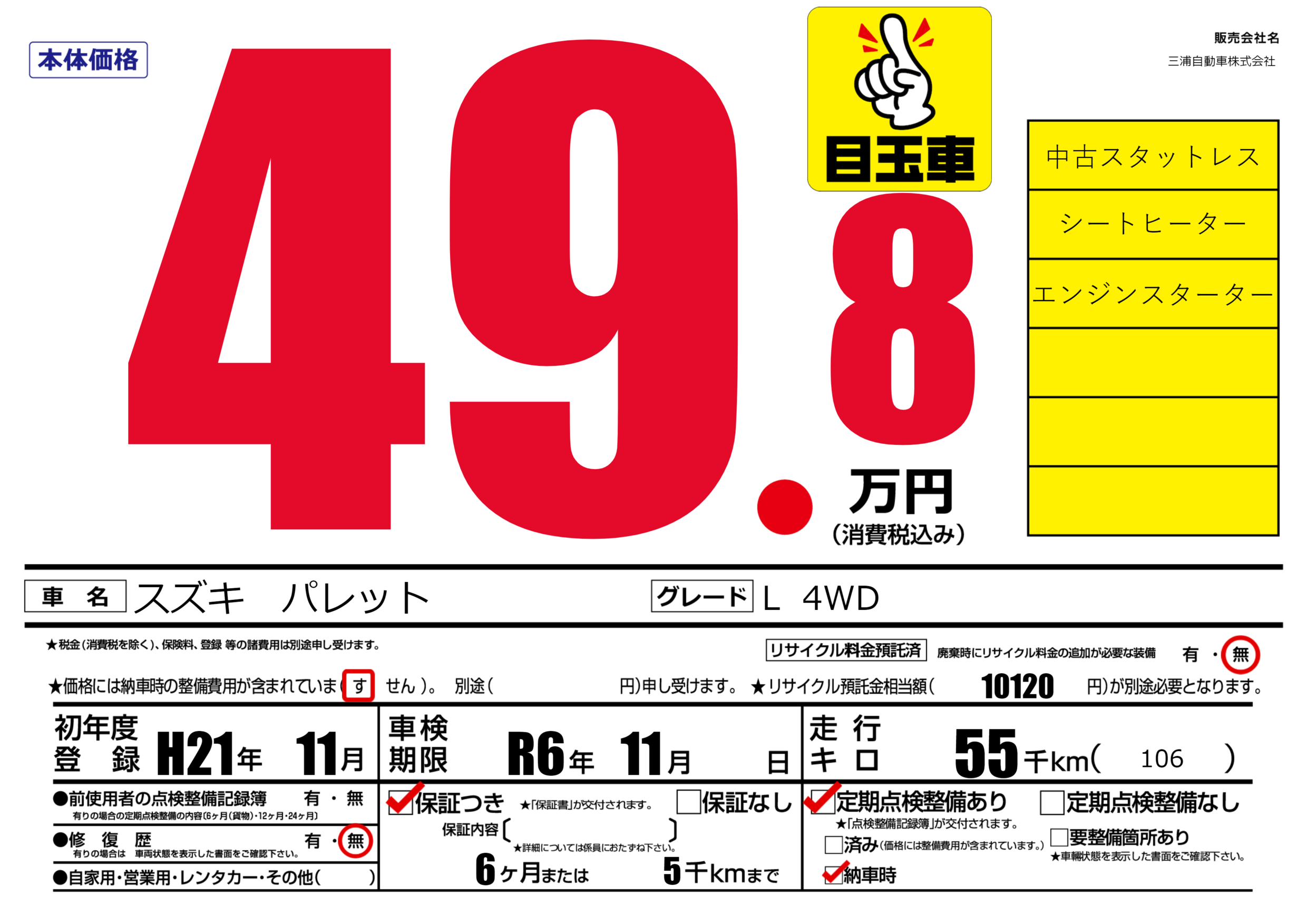 保証付き 保証内容(---) 6ヶ月または(5)千kmまで |