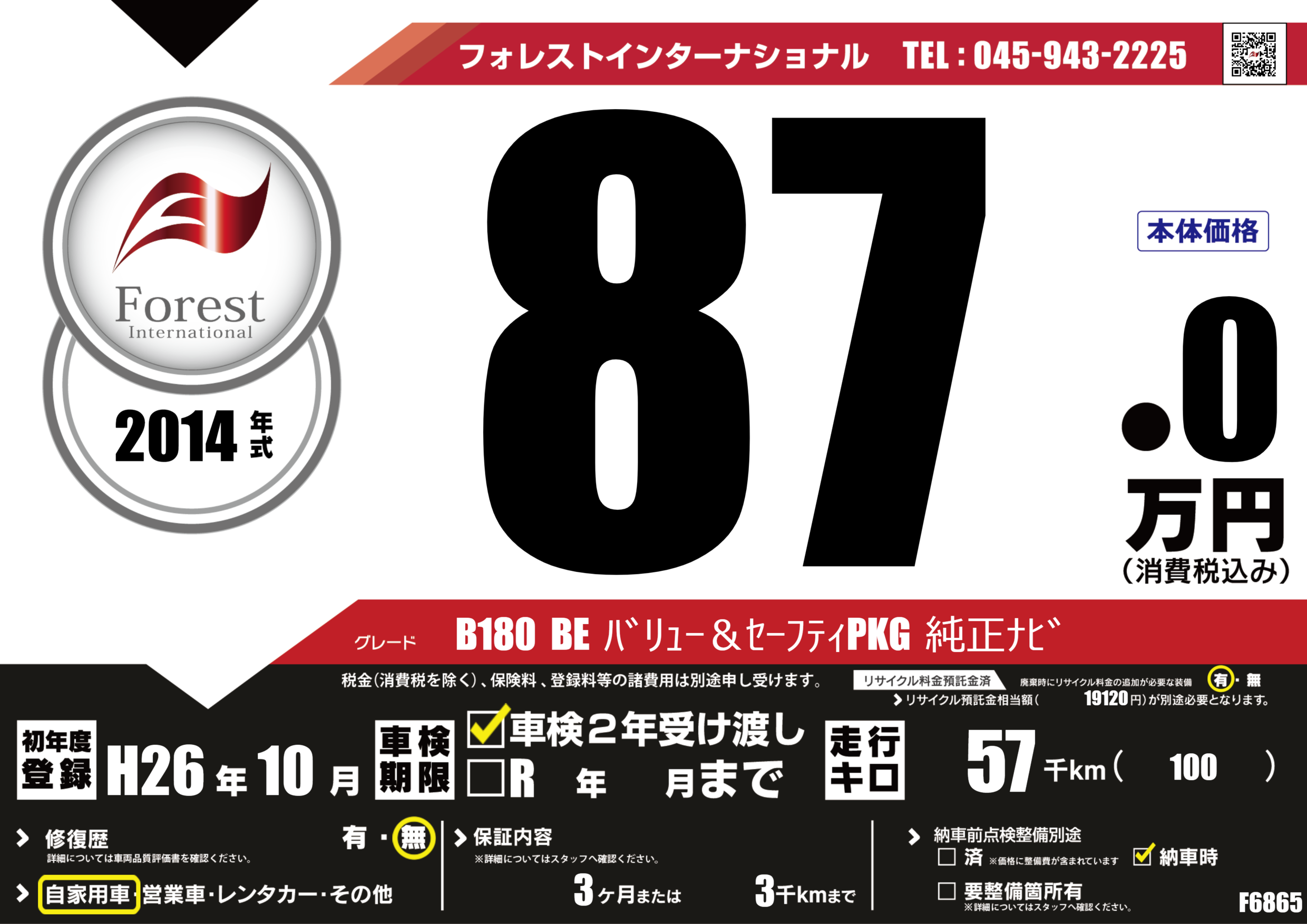 | 走行キロ | 5.7万km | 初年度登録 | H26年10月 |