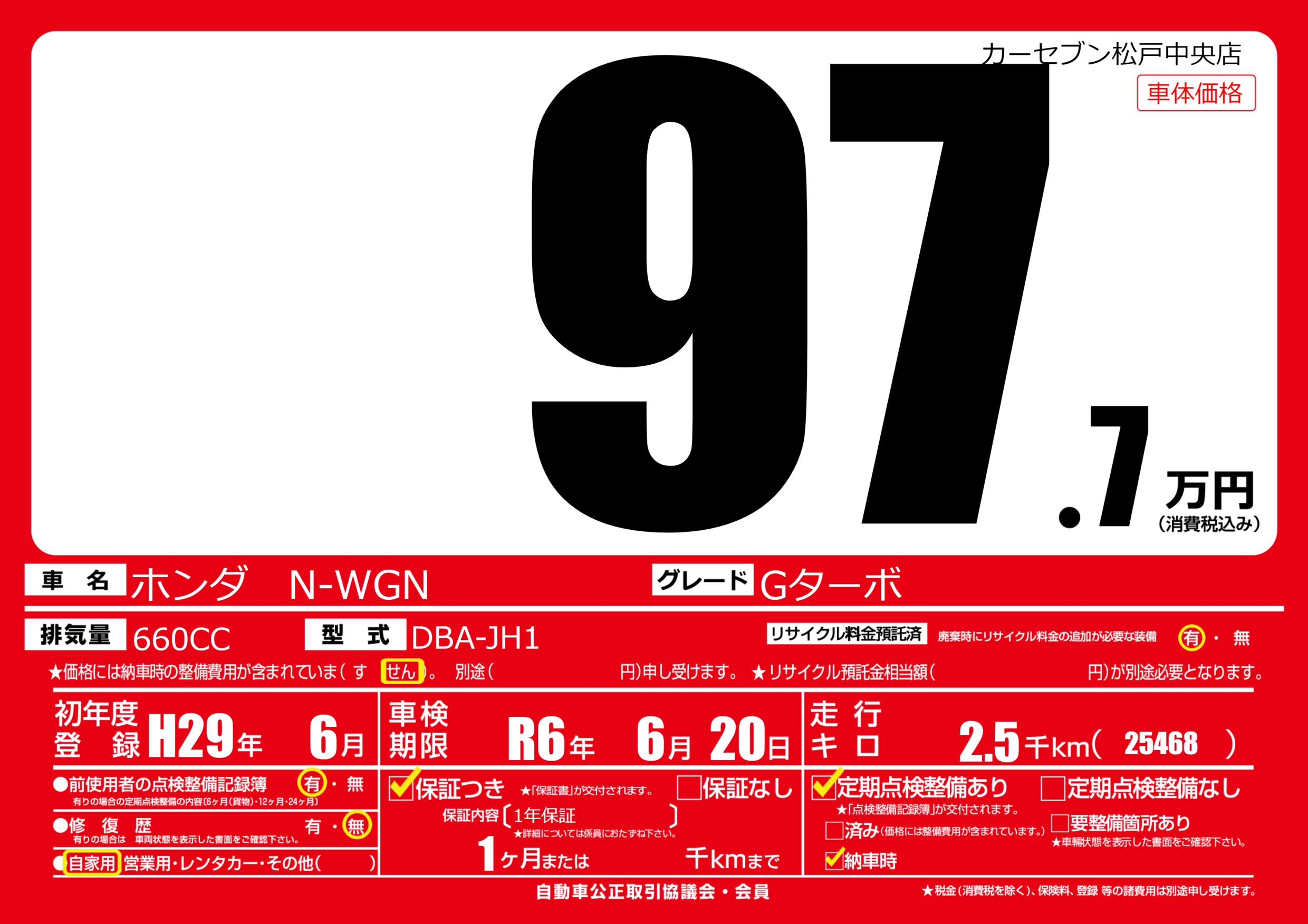 なし | 車検制限 | R6年6月20月 |