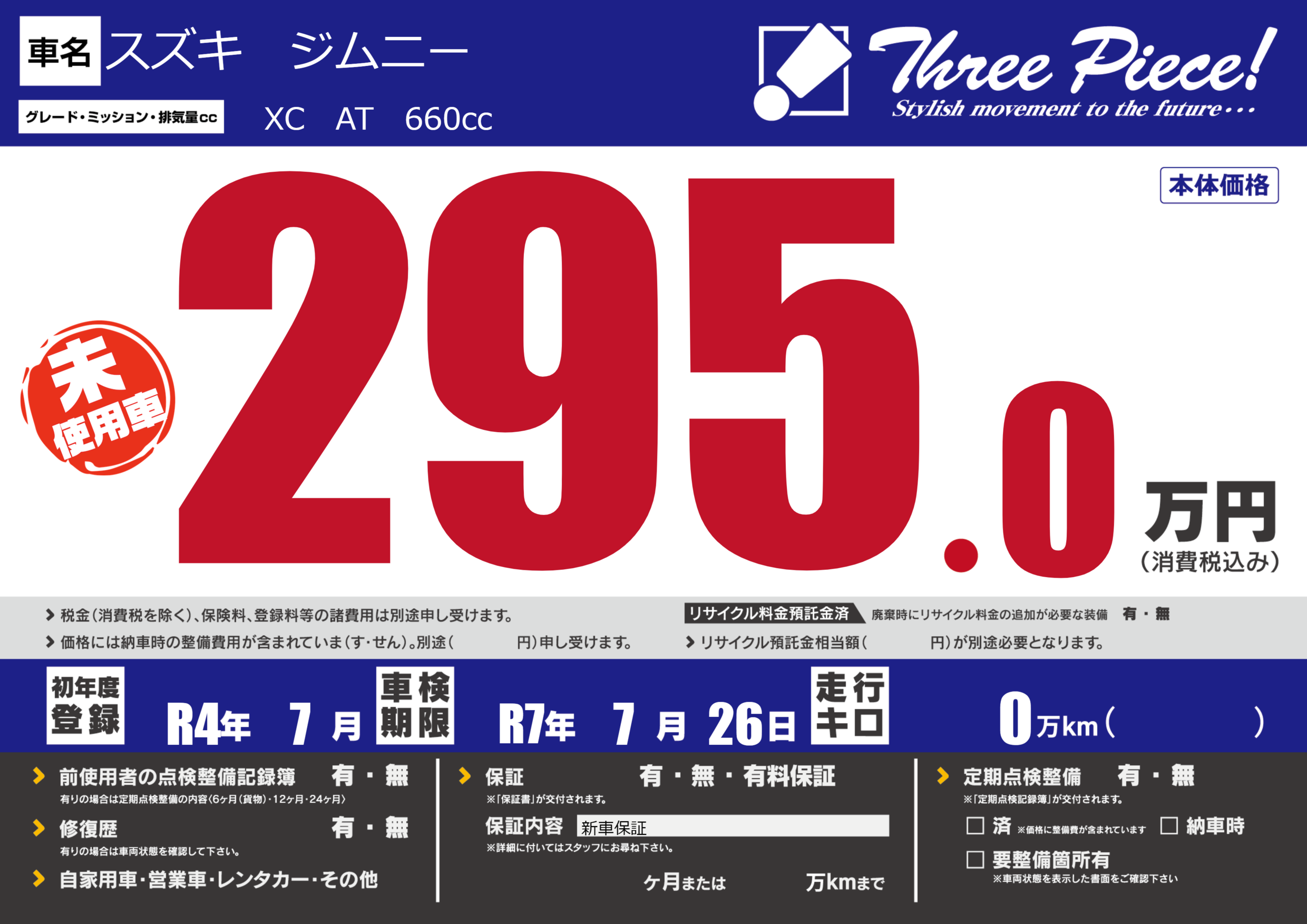 保証なし 保証内容(新車保証) ヶ月または千km |