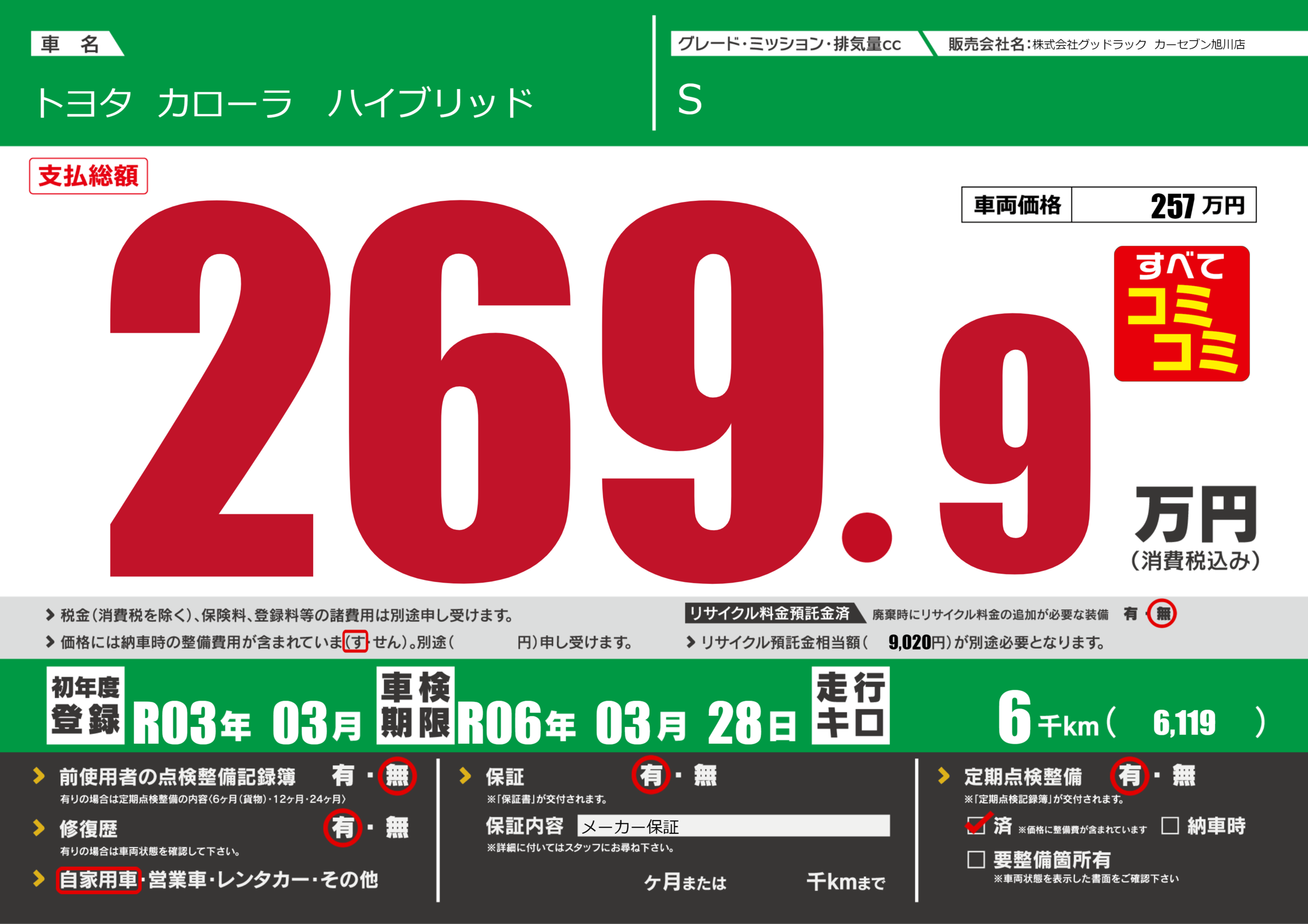 | 定期点検整備 | 定期点検整備あり 定期点検整備済み | ||