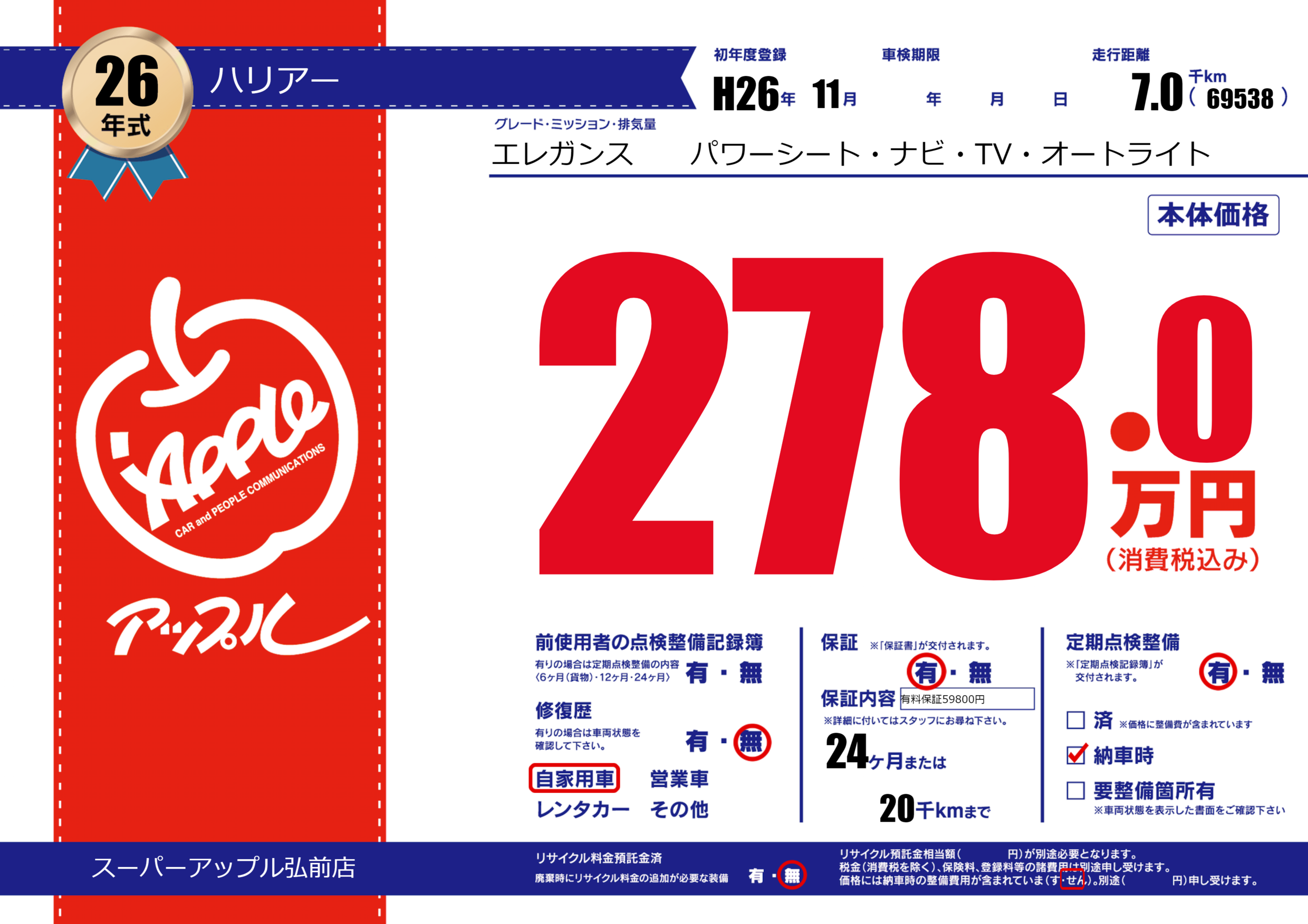 保証付き 保証内容(有料保証59800円) 24ヶ月または20千km |