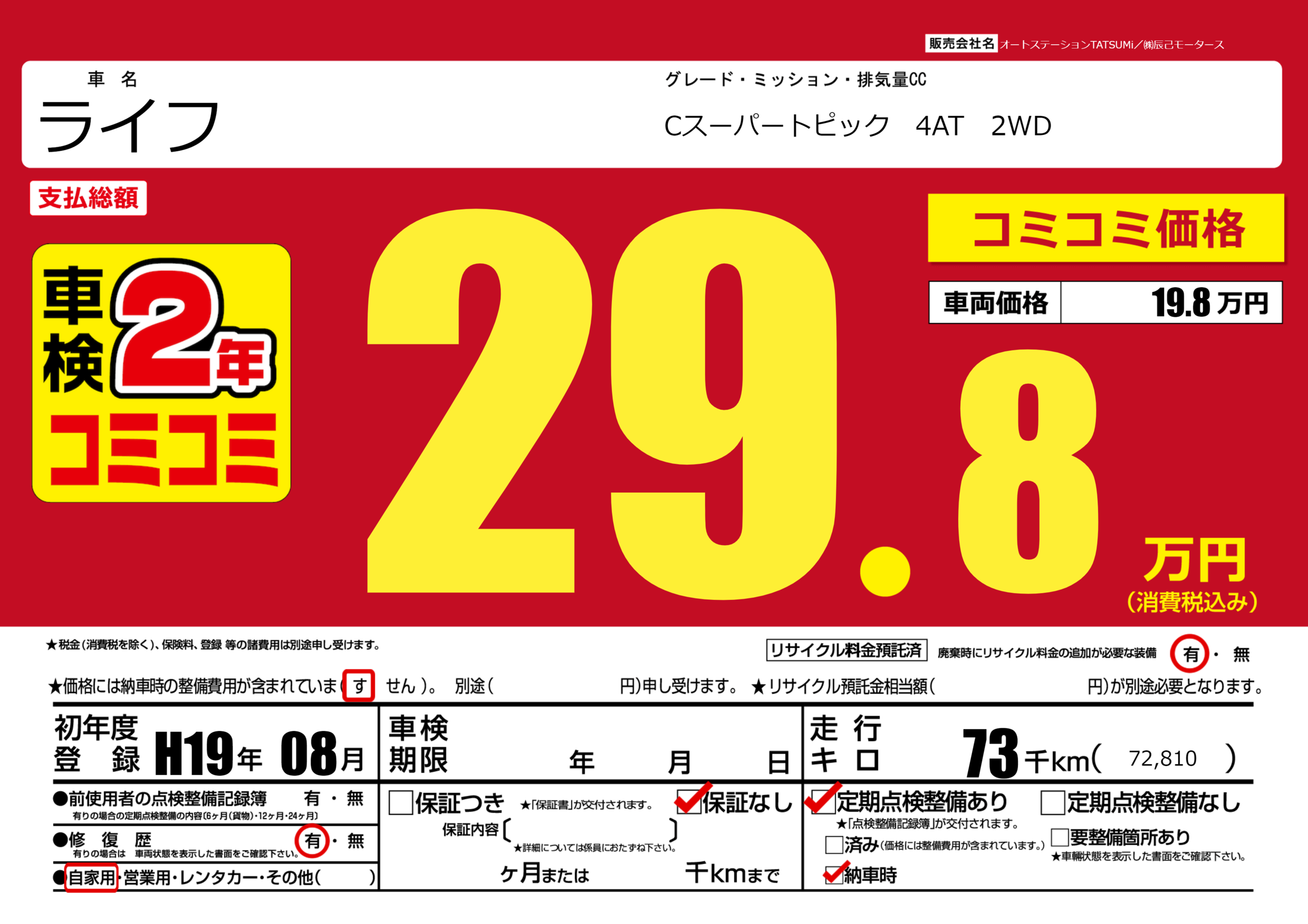 | 車名 | ライフ | グレード ミッション 排気量 |