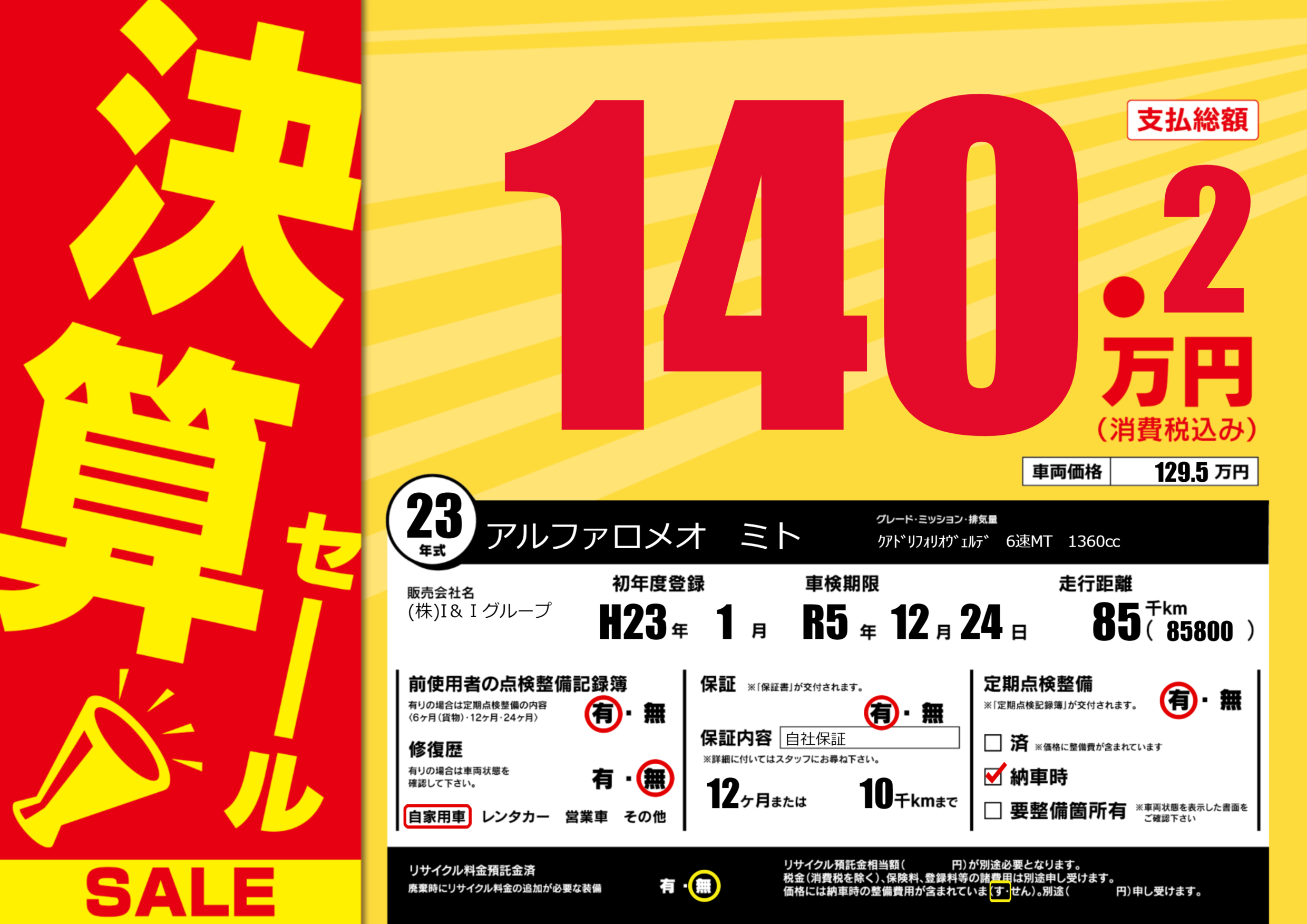 あり | 車検制限 | R5年12月24月 |