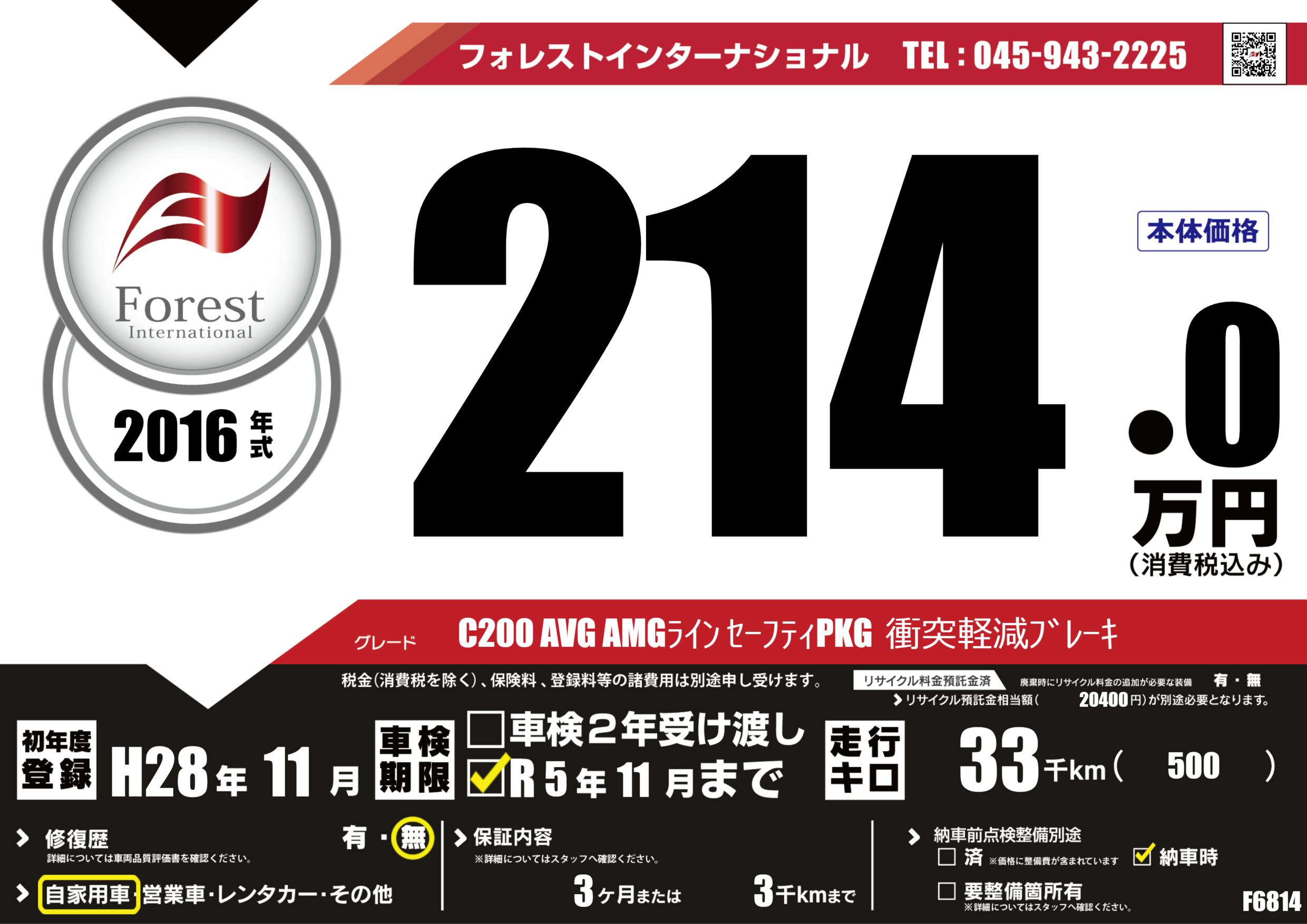C200 AVG AMGライン セーフティPKG 衝突軽減ブレーキ |